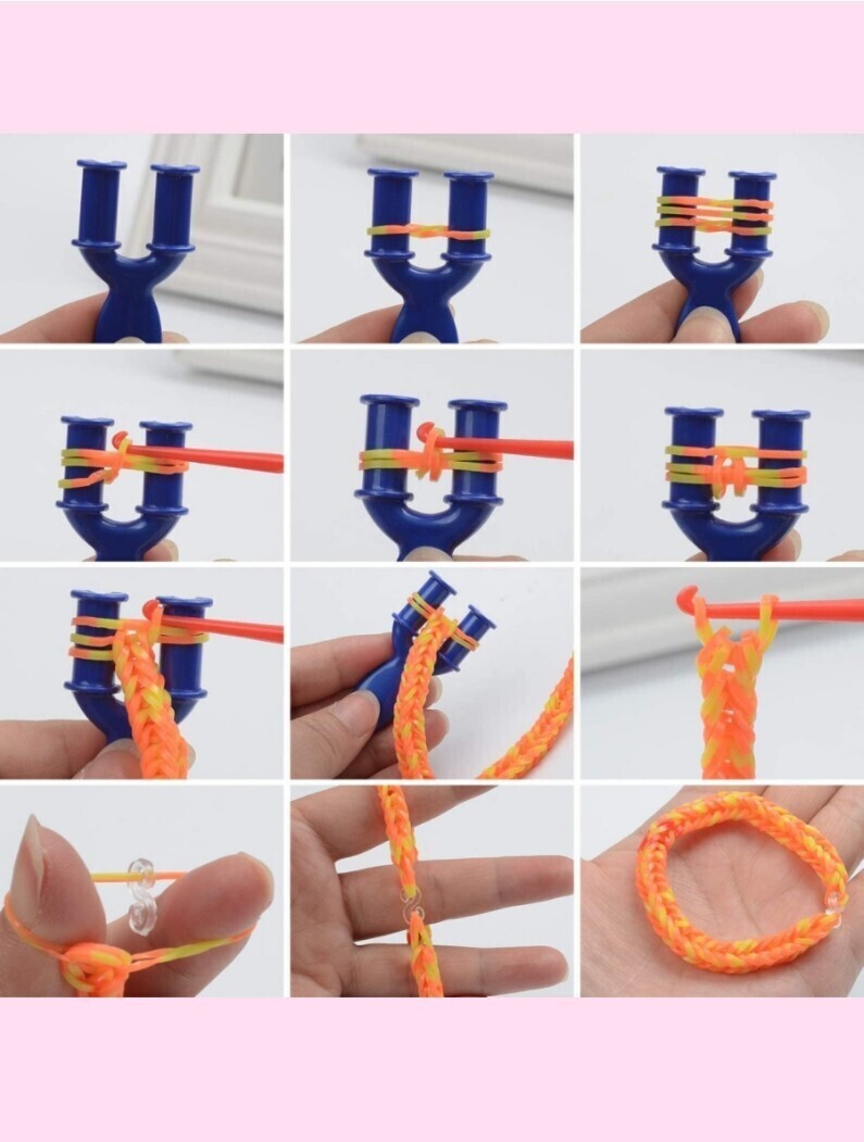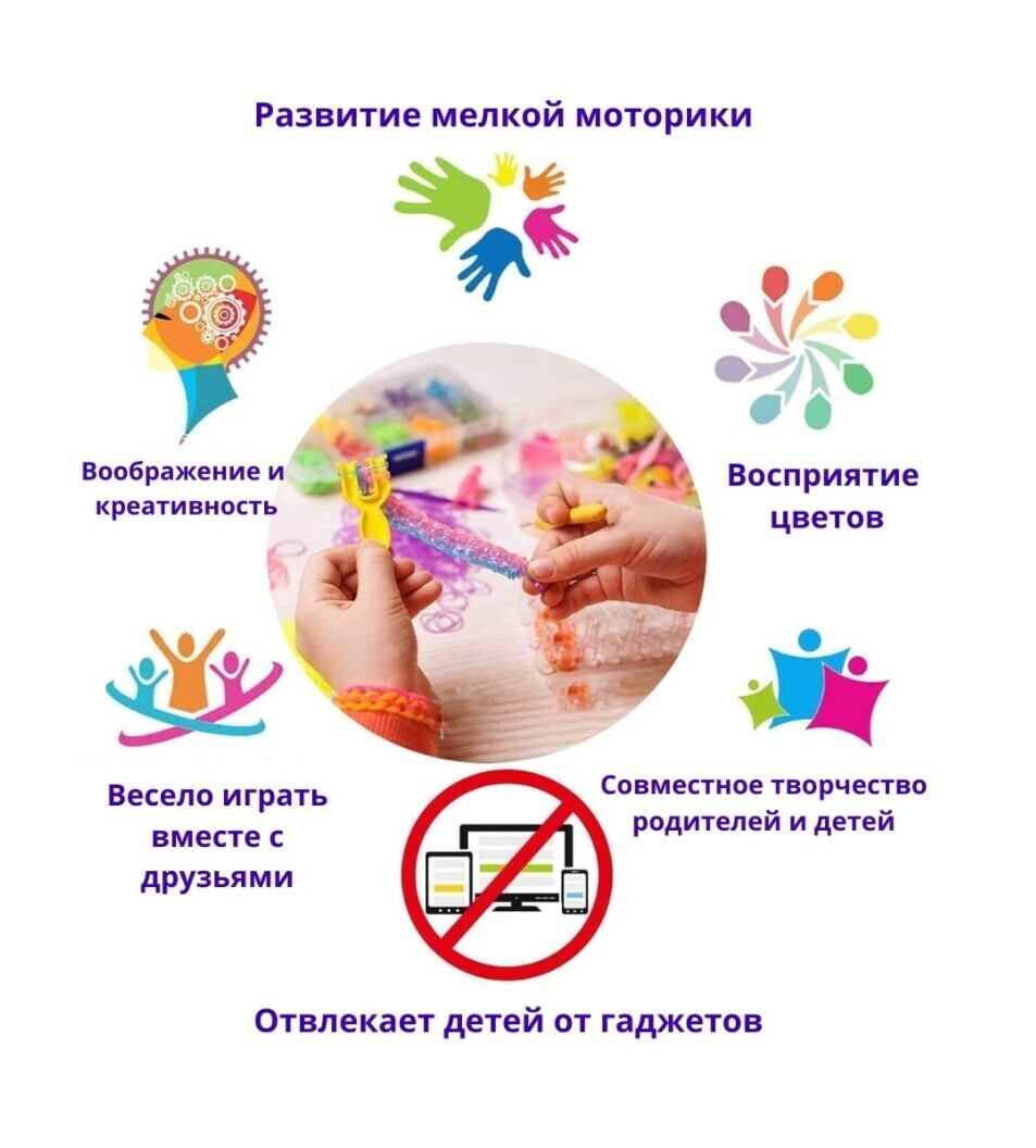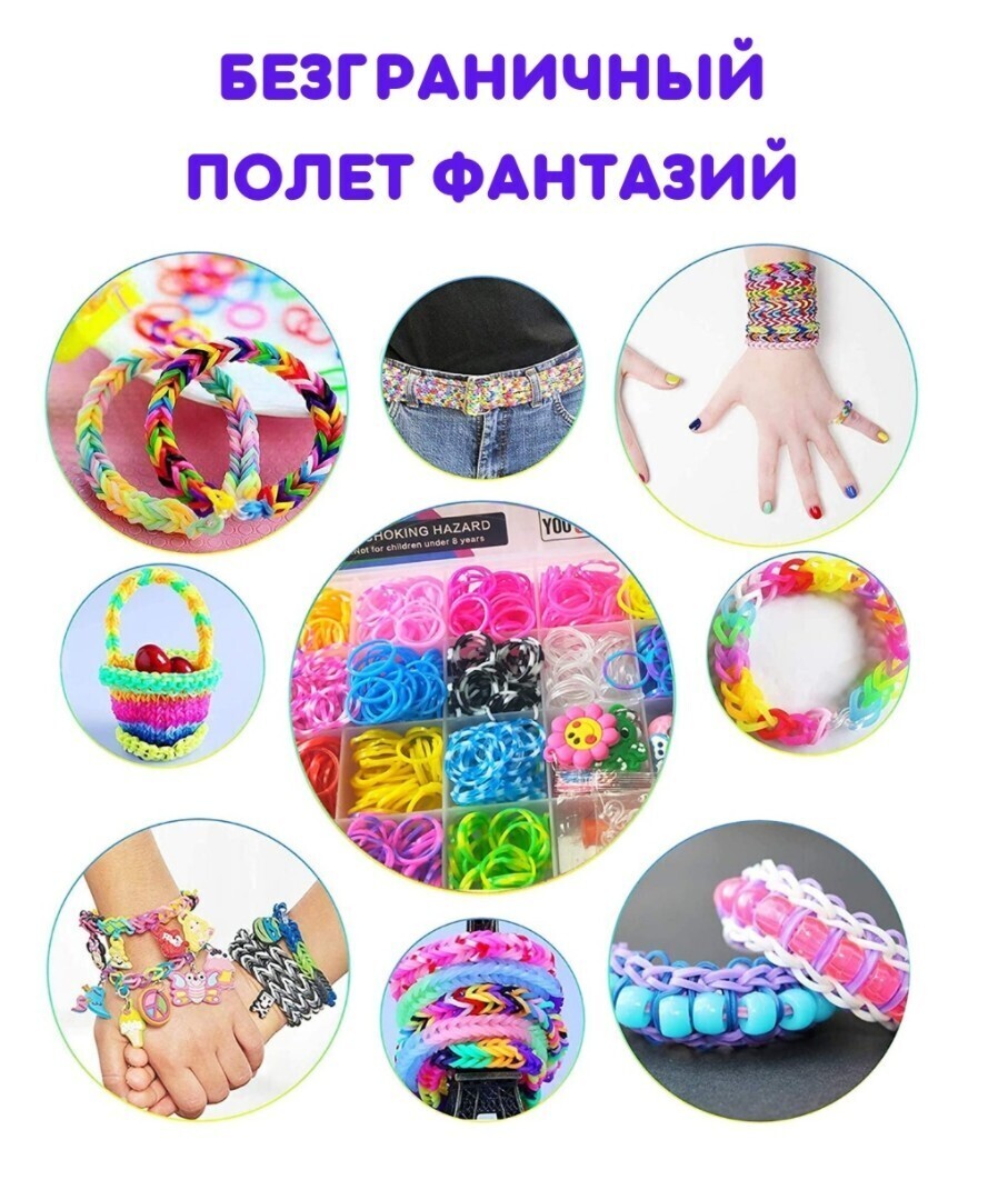 Набор резиночек для плетения браслетов, 6 цветов, крючок, станок, клипсы и микс резинок