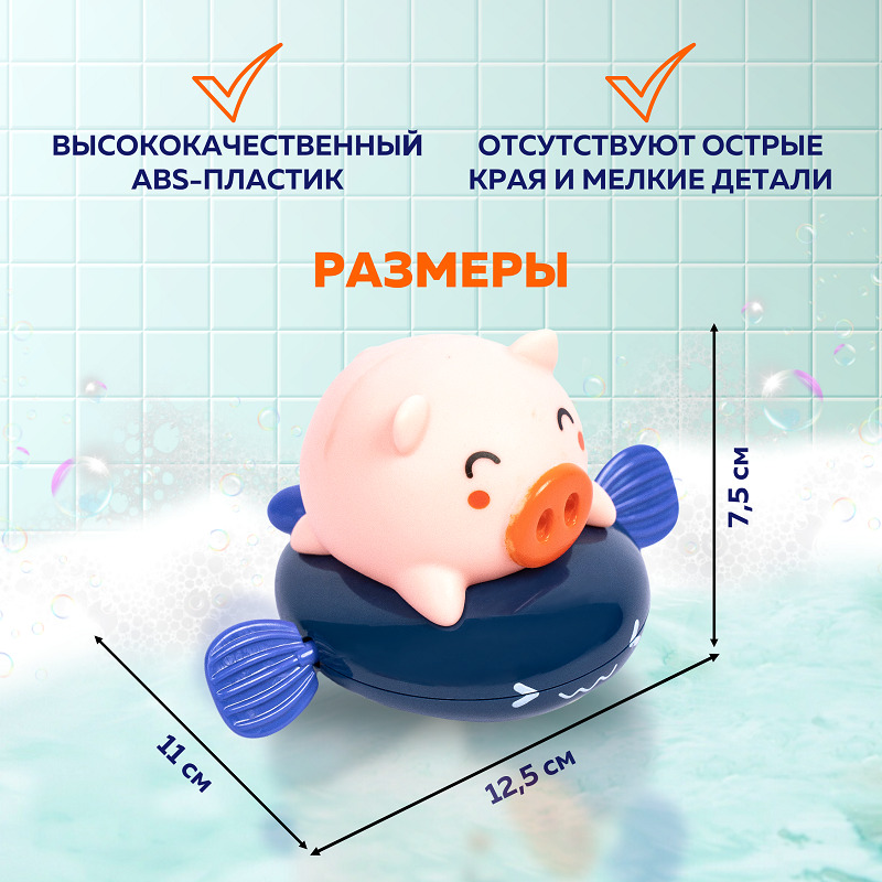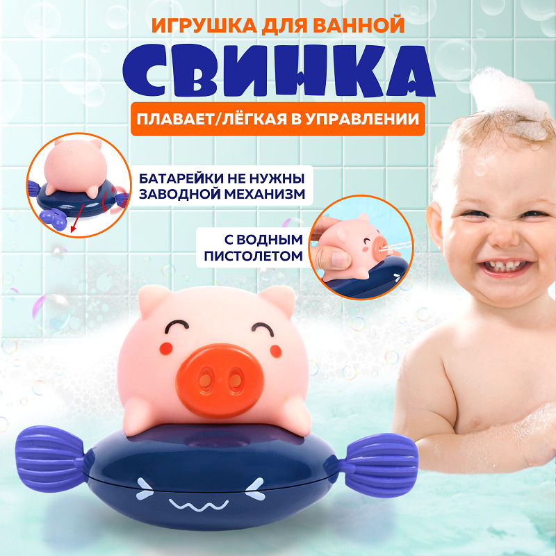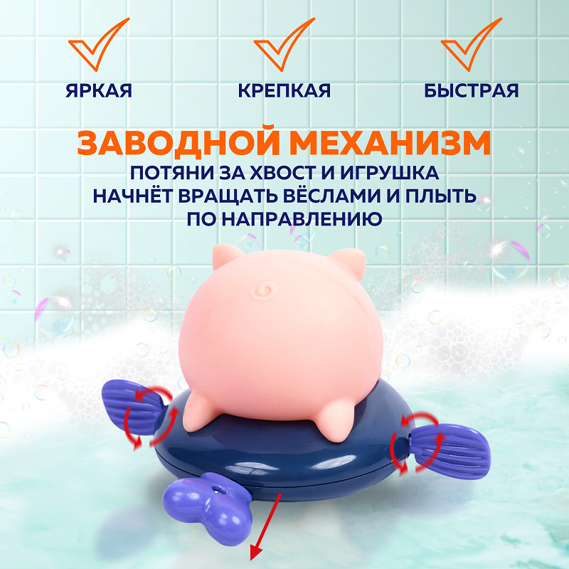 Игрушка для ванной Свинка фиолетовая / Заводная игрушка для ванной / Игрушка для купания