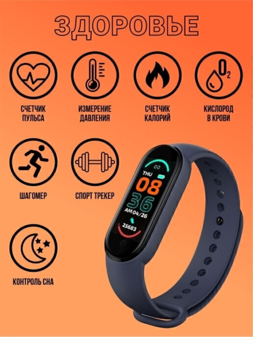 Фитнес-браслет SB Smart Band 6 с измерением артериального давления, черный