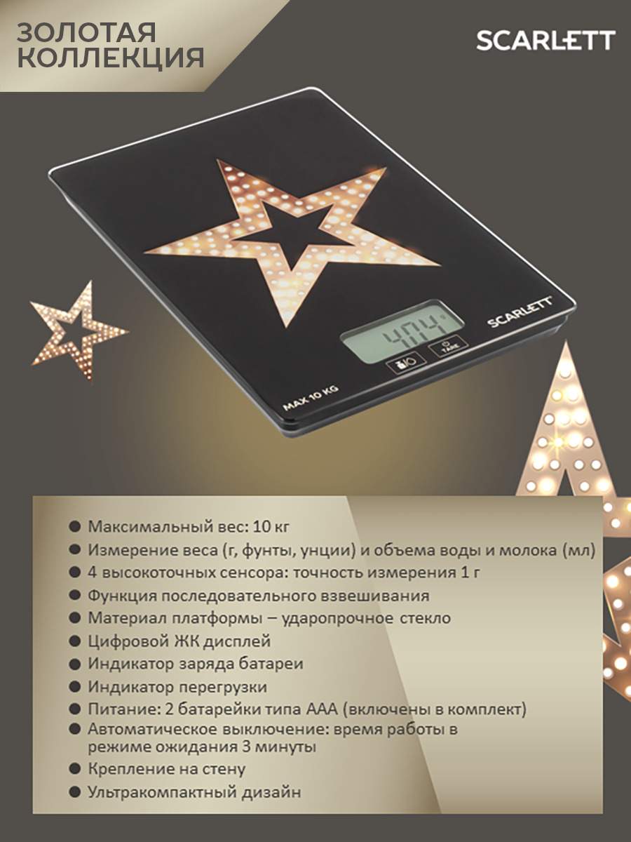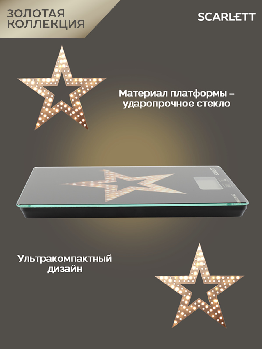 Электронные Кухонные весы Scarlett SC-KS57P96, Золотая коллекция, черный
