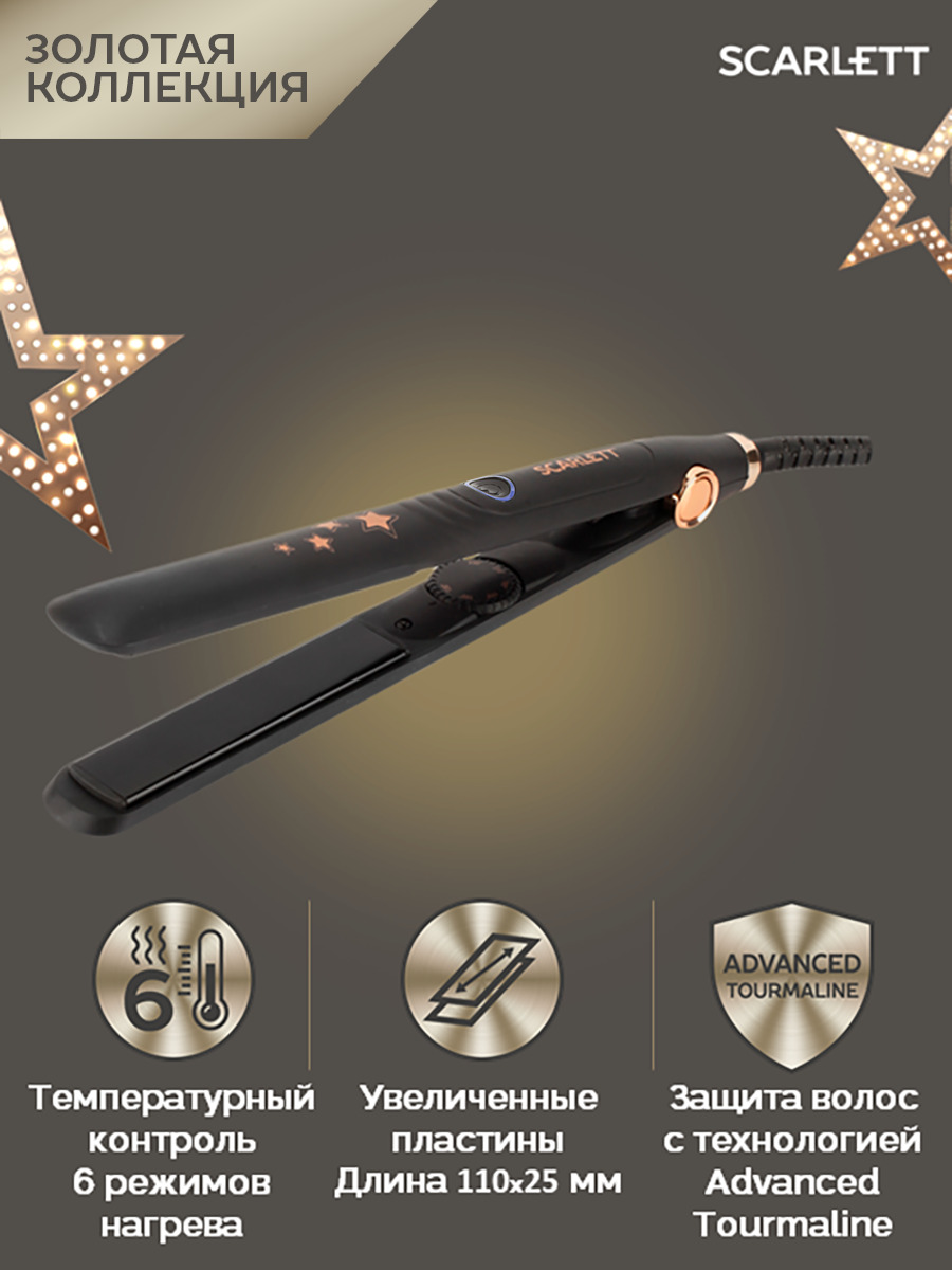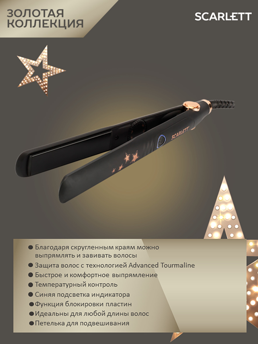 Выпрямитель для волос Scarlett SC-HS60T58, Золотая коллекция ,черный