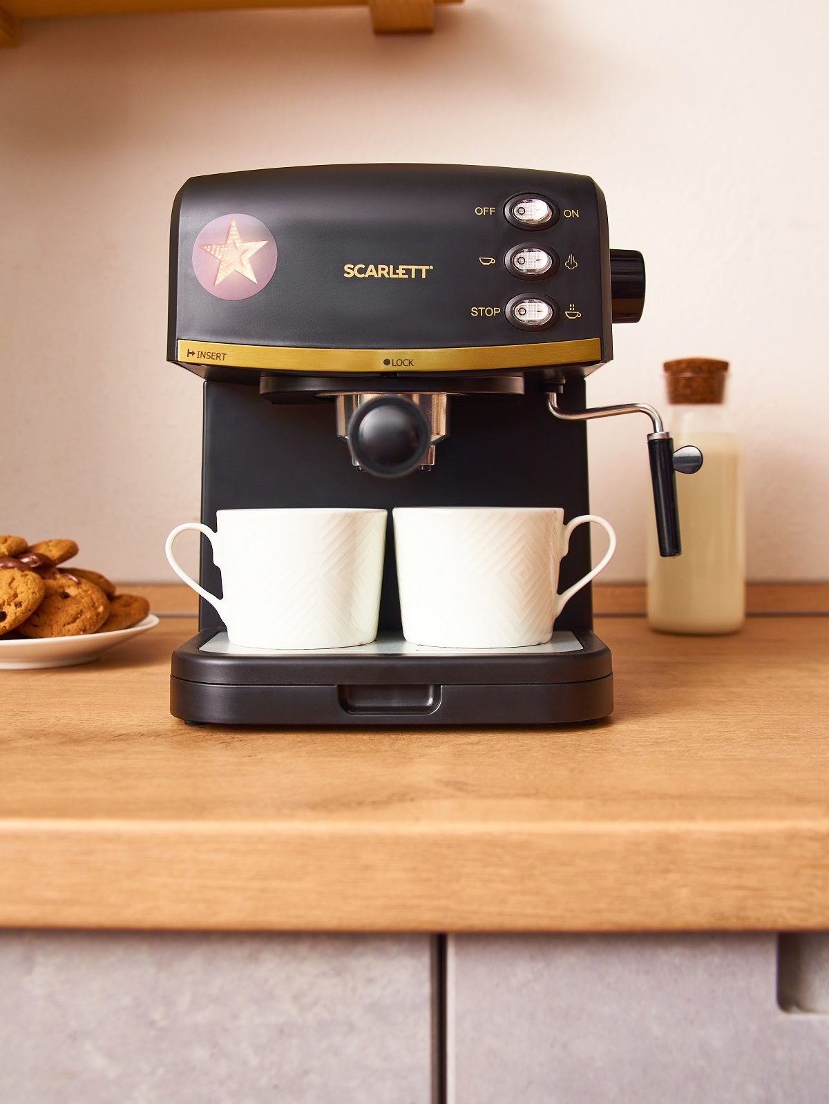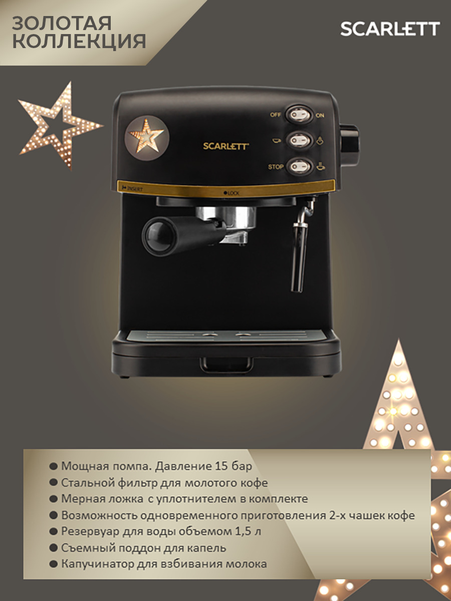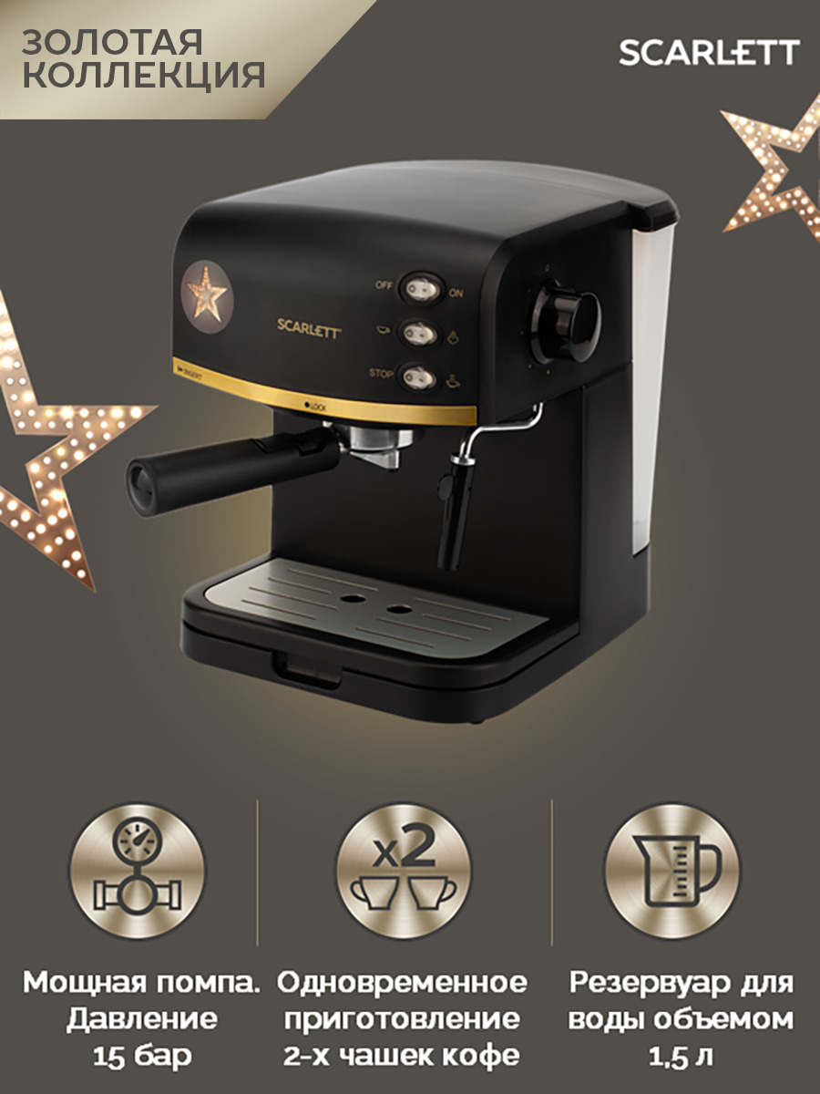 Кофеварка рожковая Scarlett SC-CM33020, Золотая коллекция, черный
