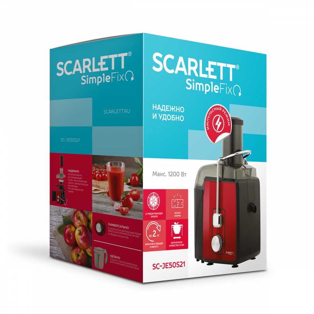 Соковыжималка центробежная Scarlett SC-JE50S21, красный