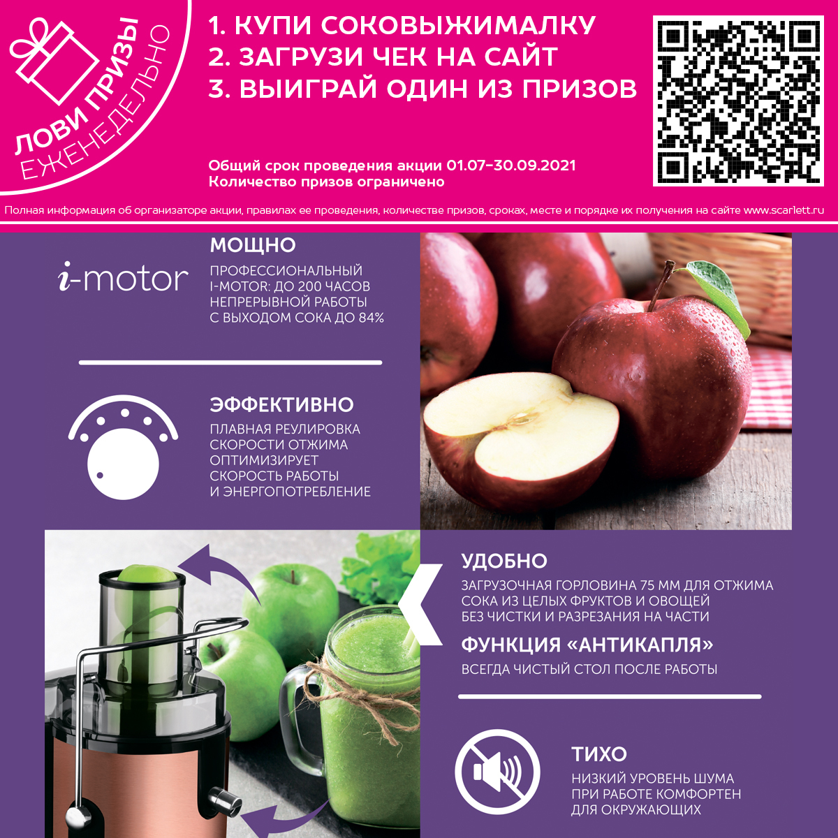 Соковыжималка центробежная Scarlett SC-JE50S47, фиолетовый