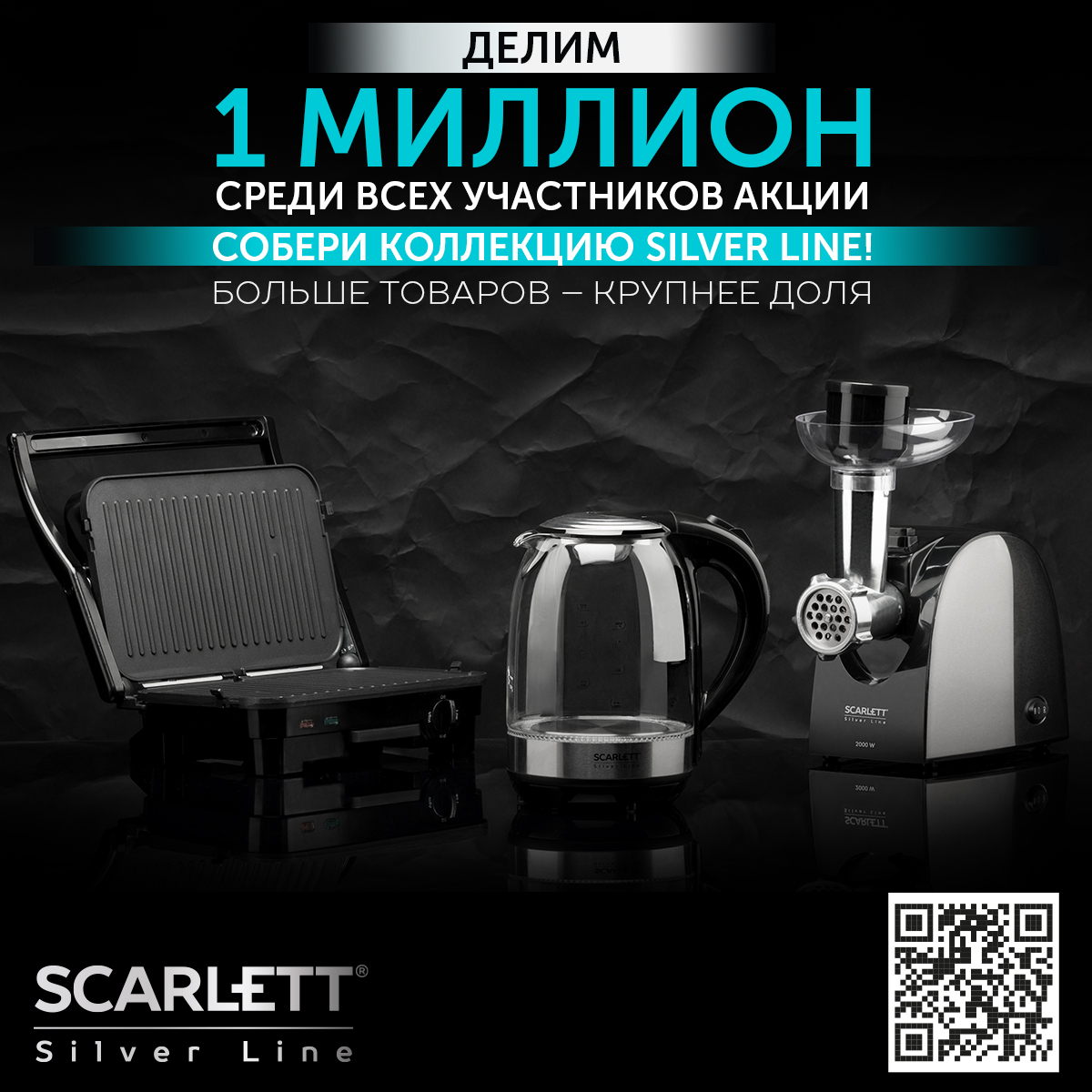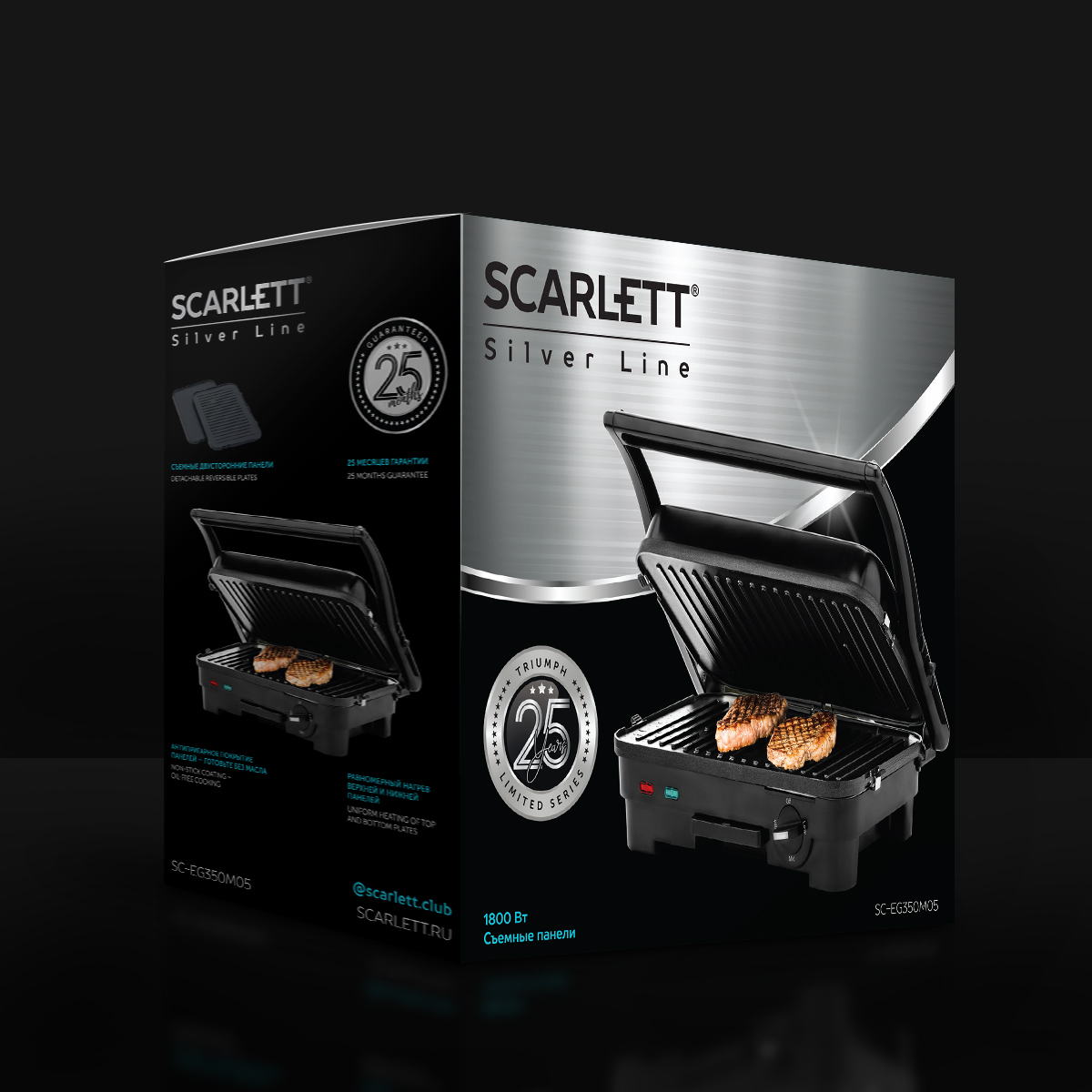 Гриль электрический SC-EG350M05 Scarlett, 1800 Вт, съемные панели, коллекция Silver Line