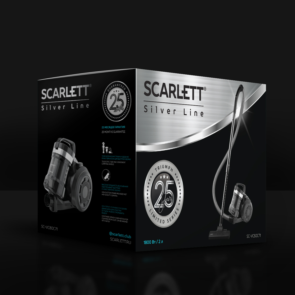 Бытовой пылесос Scarlett SC-VC80C71 с технологией "циклон", 1800 Вт, коллекция Silver Line, черный