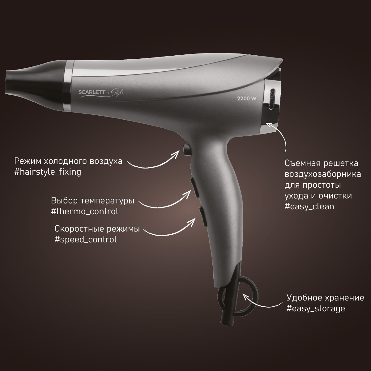 Фен для волос Scarlett SC-HD70I74 2200 Вт, темно-серый