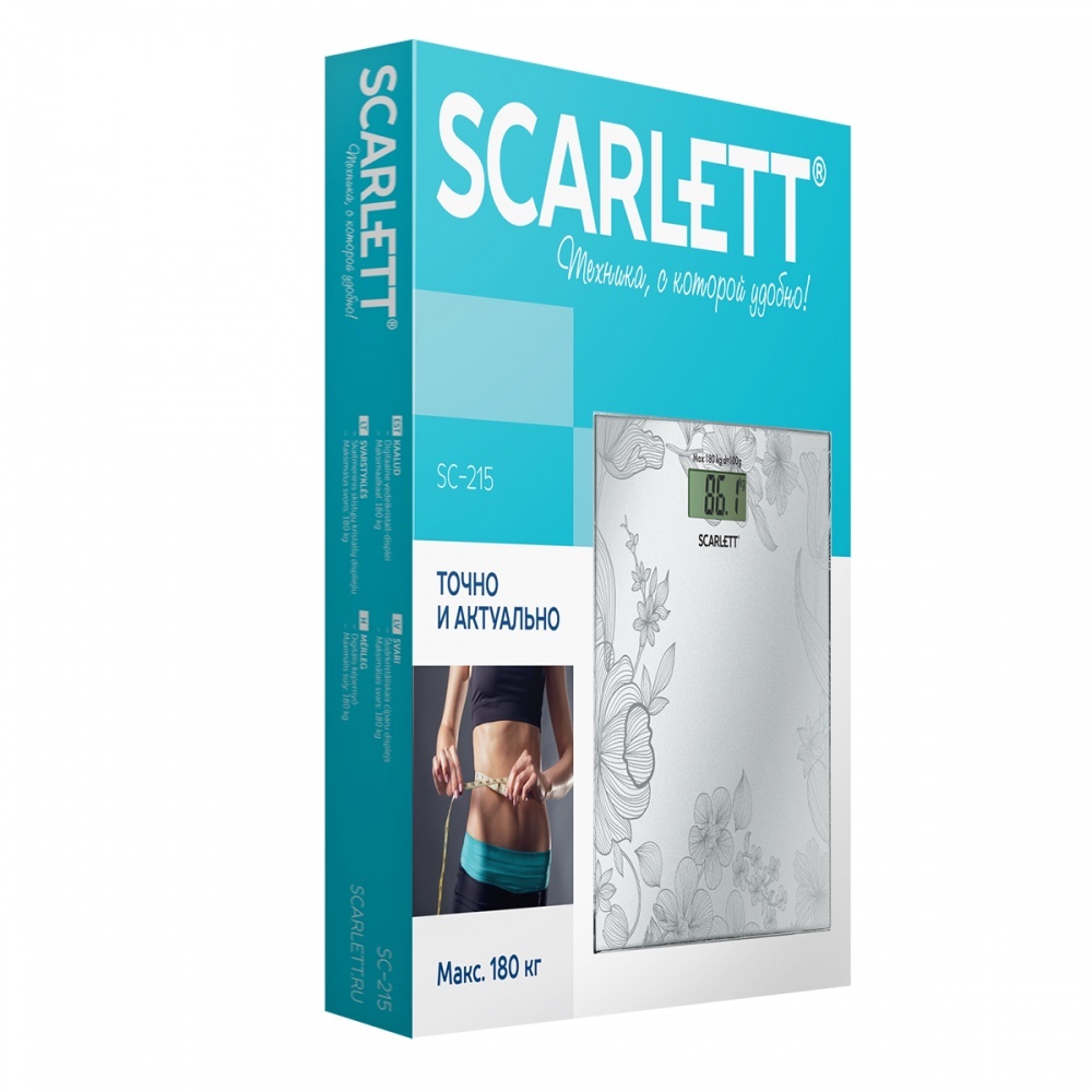 Напольные весы Scarlett Электронные стеклянные 180 кг, SC-215, белый