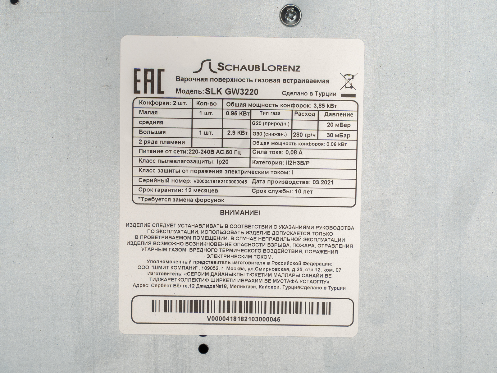 Газовая варочная панель Schaub Lorenz SLK GW3220
