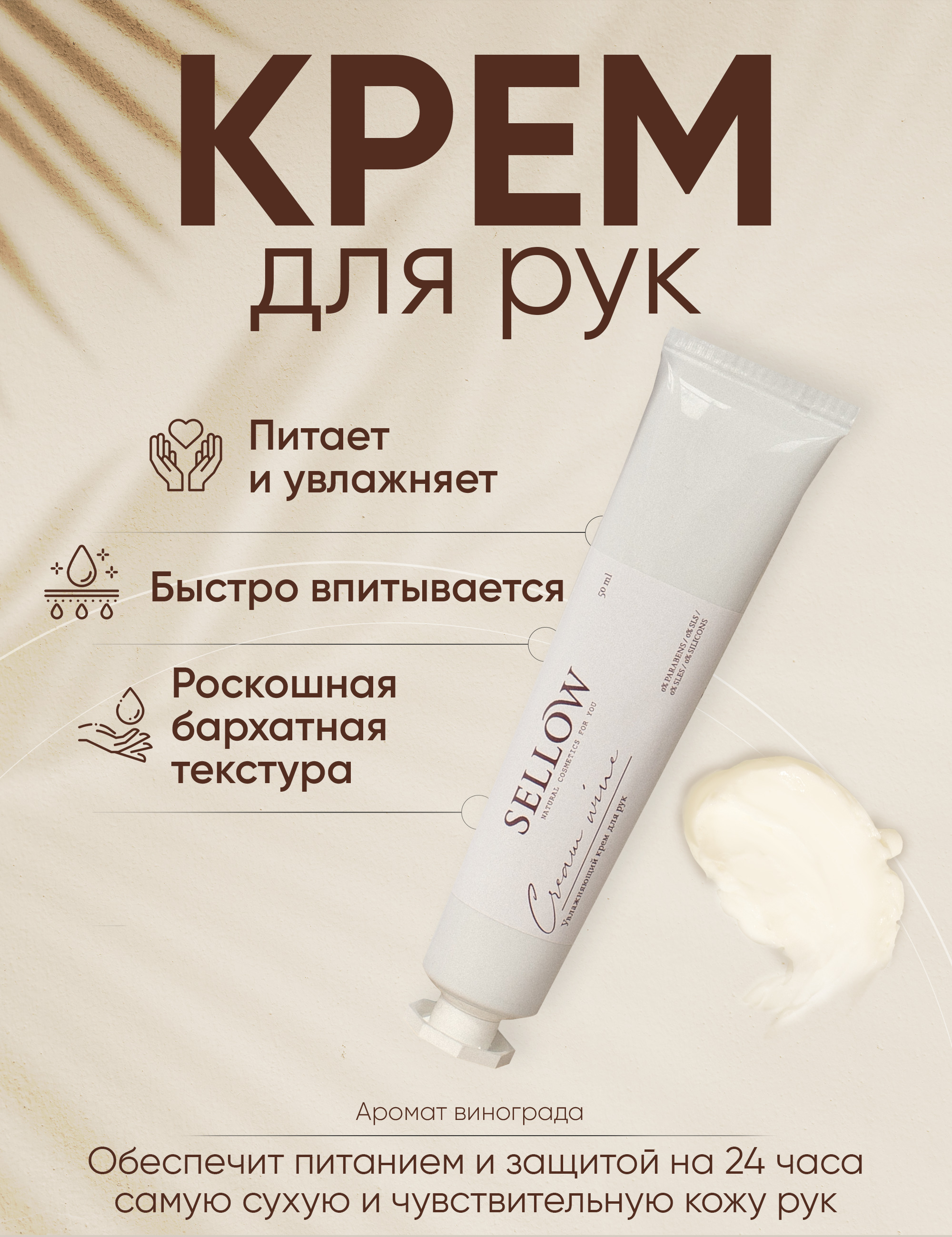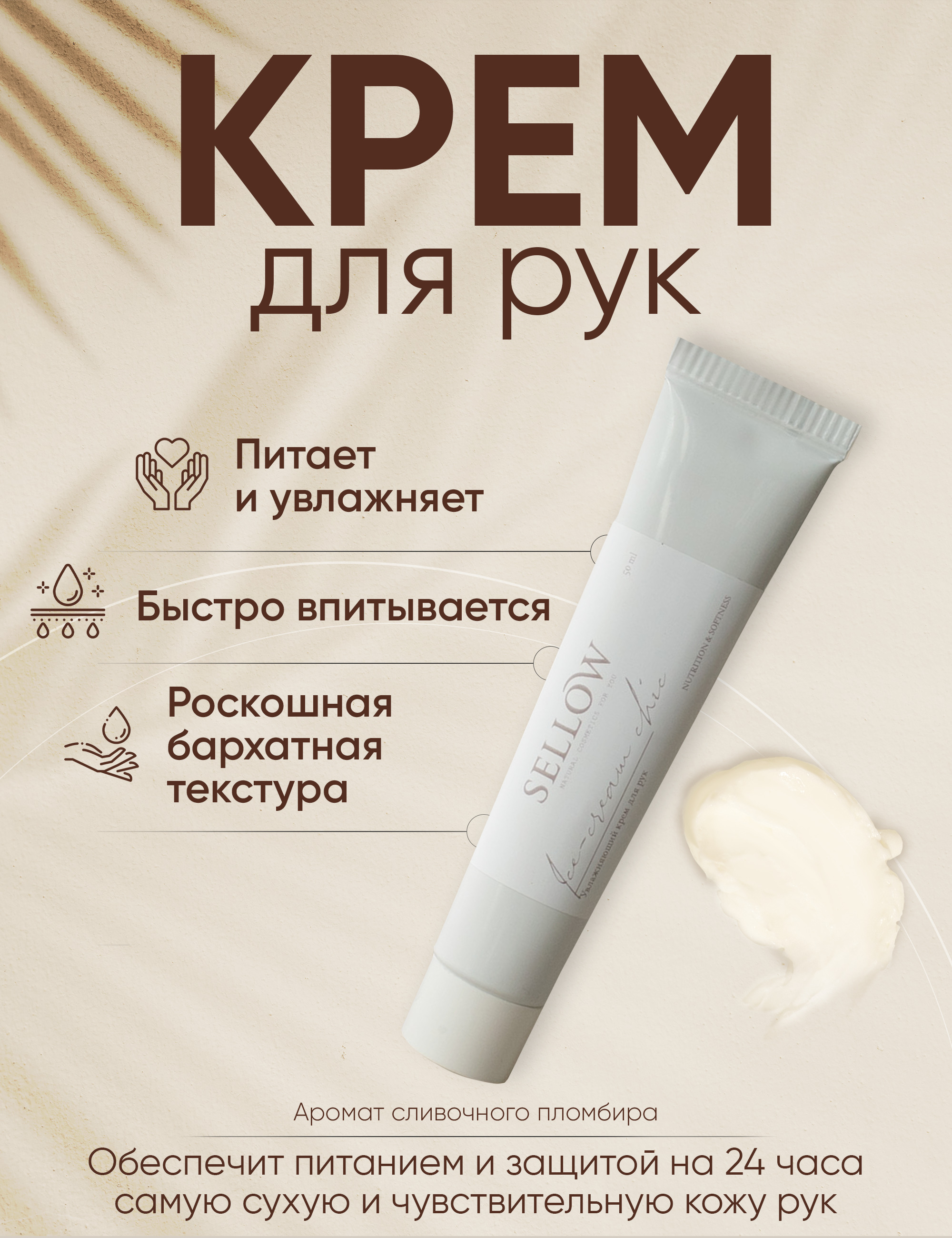 SELLOW Крем для рук ПЛОМБИР / Натуральный / Увлажняющий / Питательный / Питание и защита / От сухости / 50 мл.