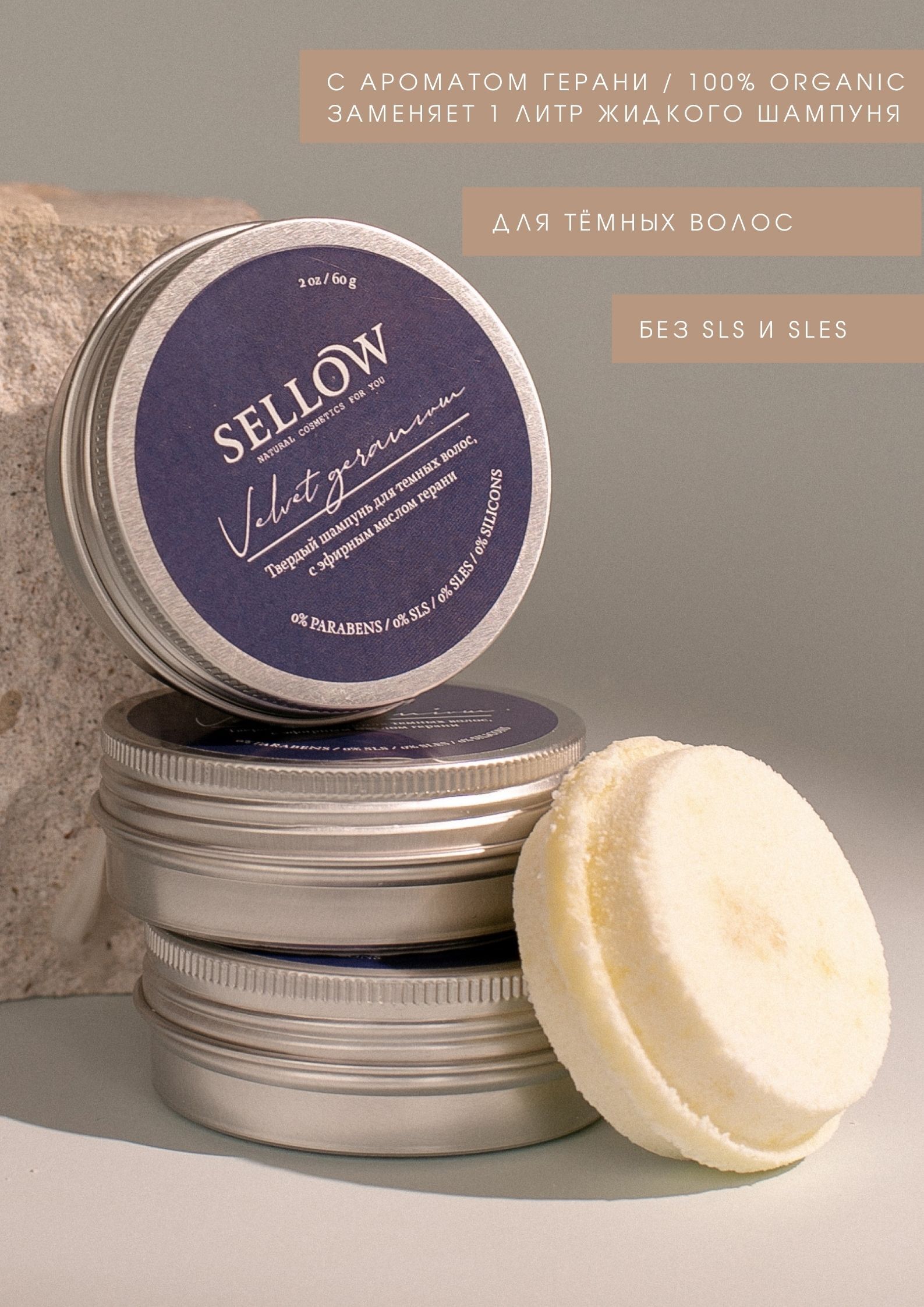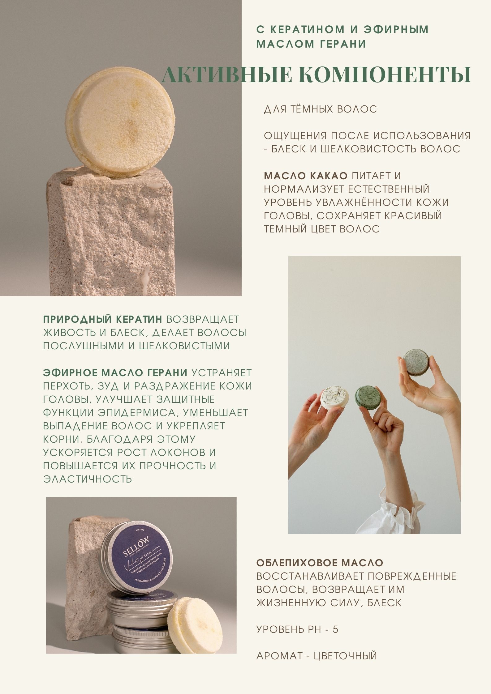 Твердый бессульфатный шампунь для тёмных волос с кератином и эфирным маслом герани
