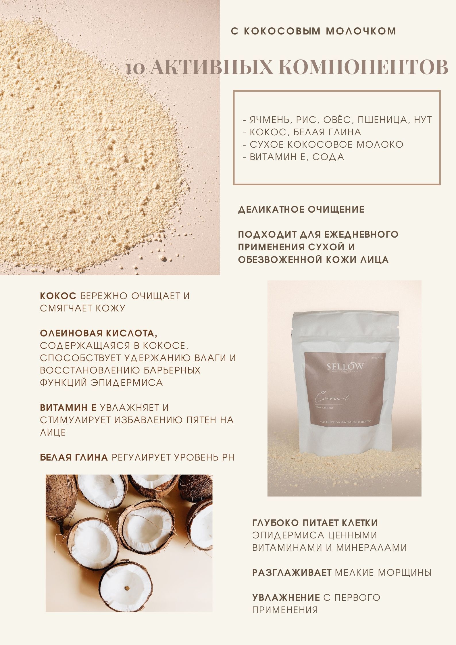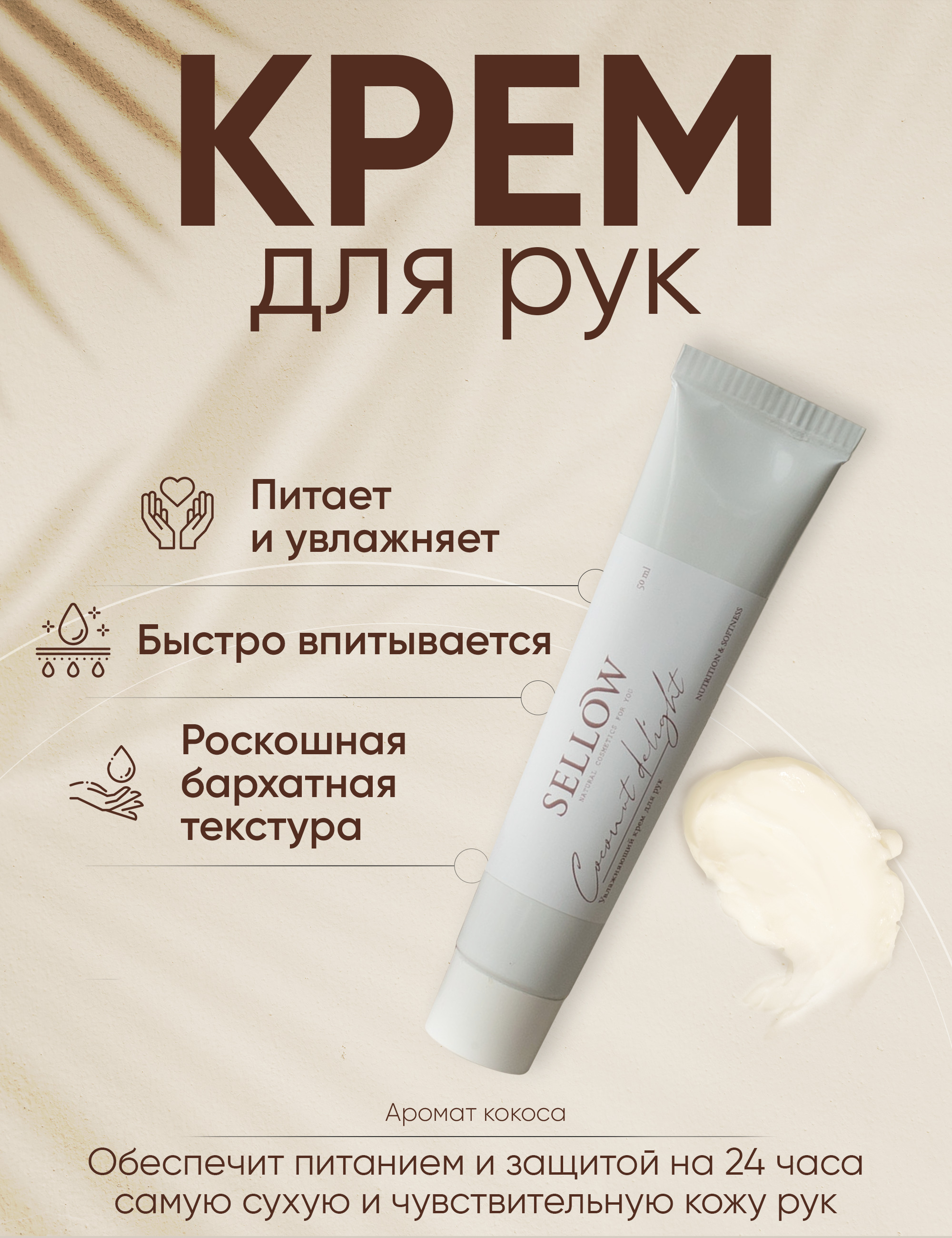 SELLOW Крем для рук КОКОС / Натуральный / Увлажняющий / Питательный / Питание и защита / От сухости / 50 мл.