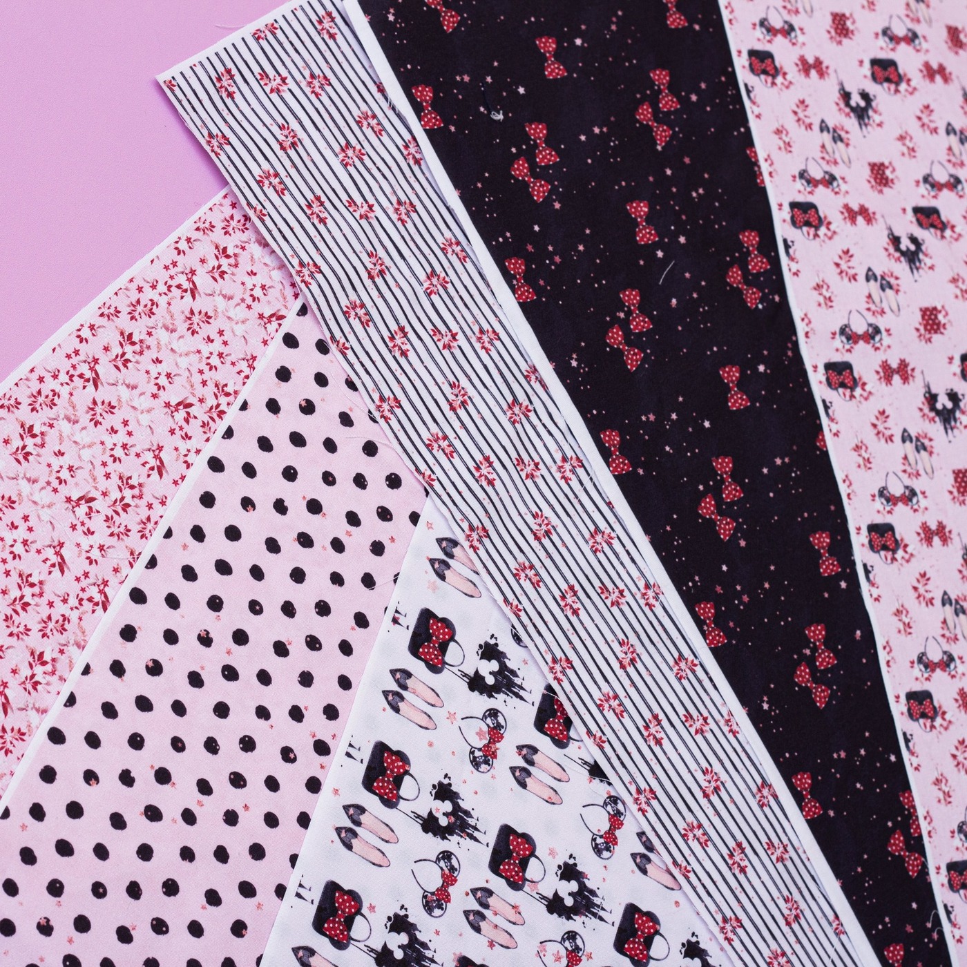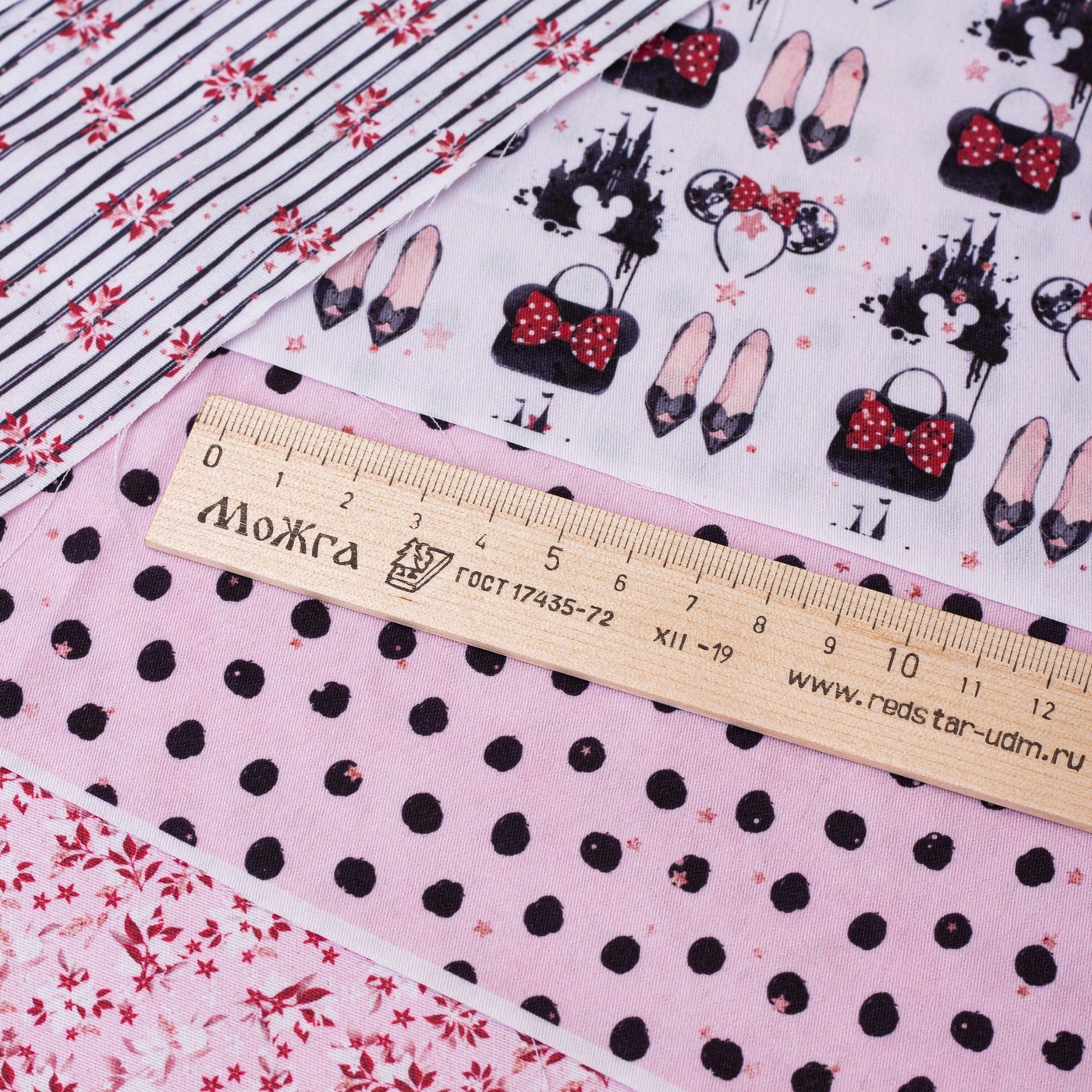 Набор тканей для кукол и скрапбукинга. Премиальный сатин. Цифровая печать. Набор "Минни". 100%-й хлопок.