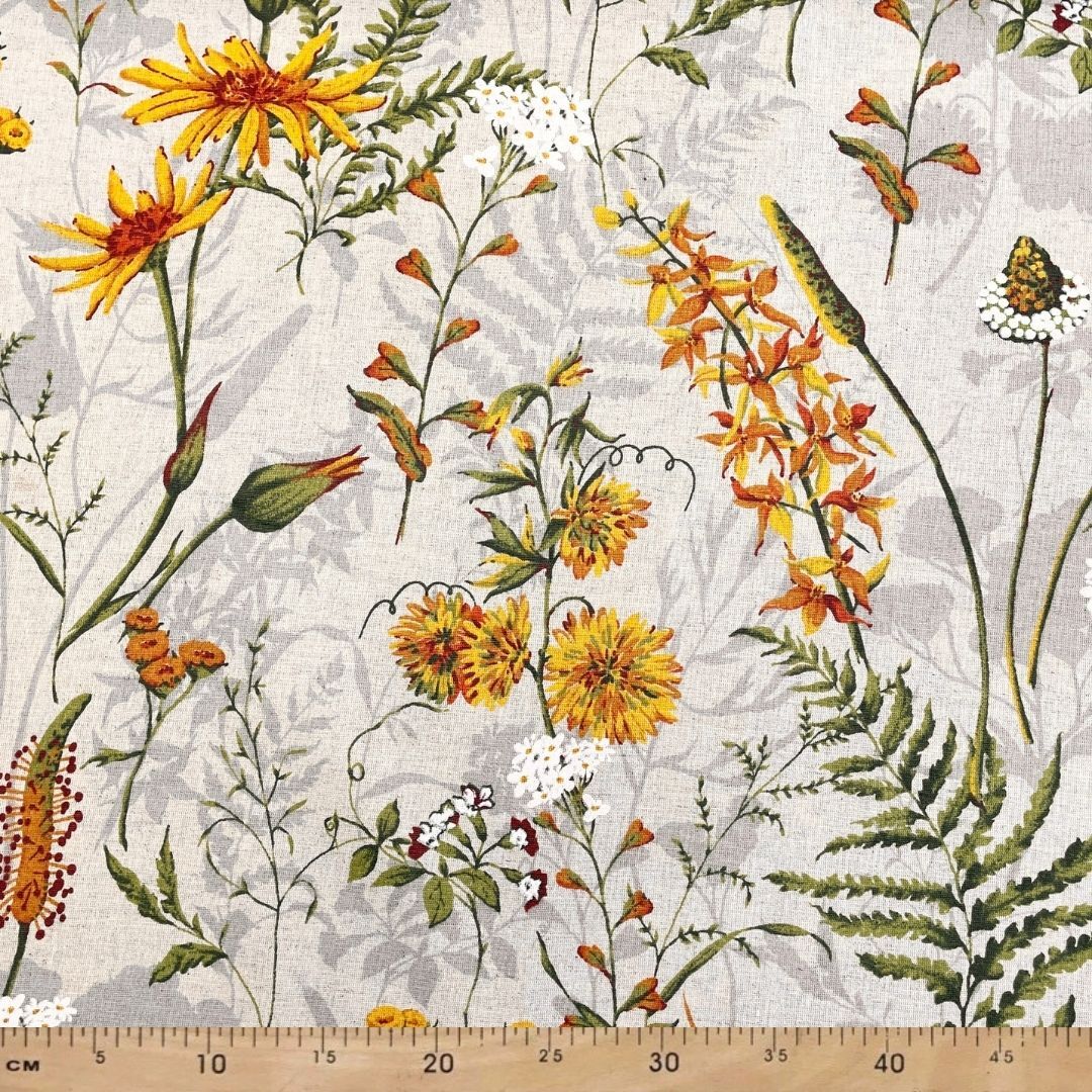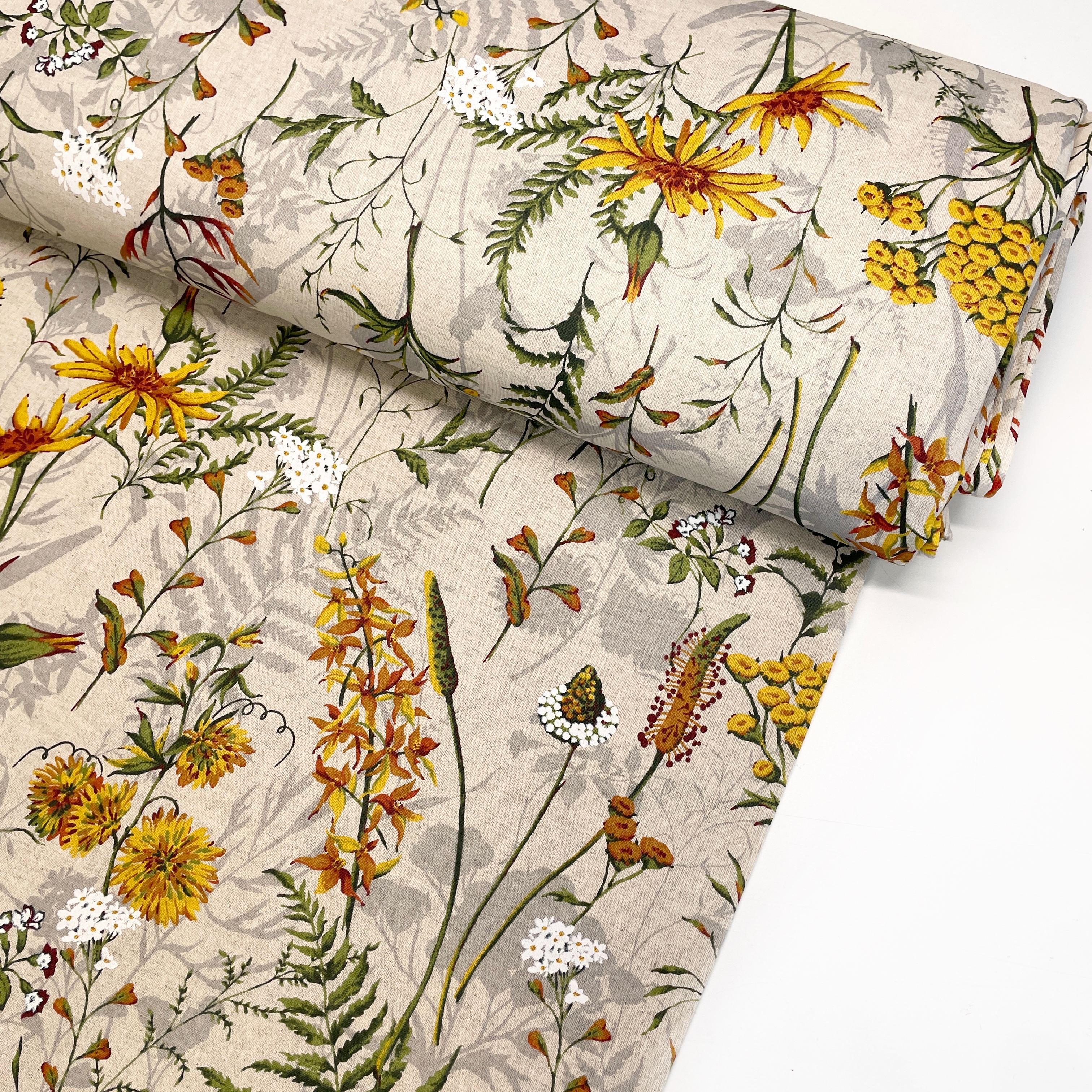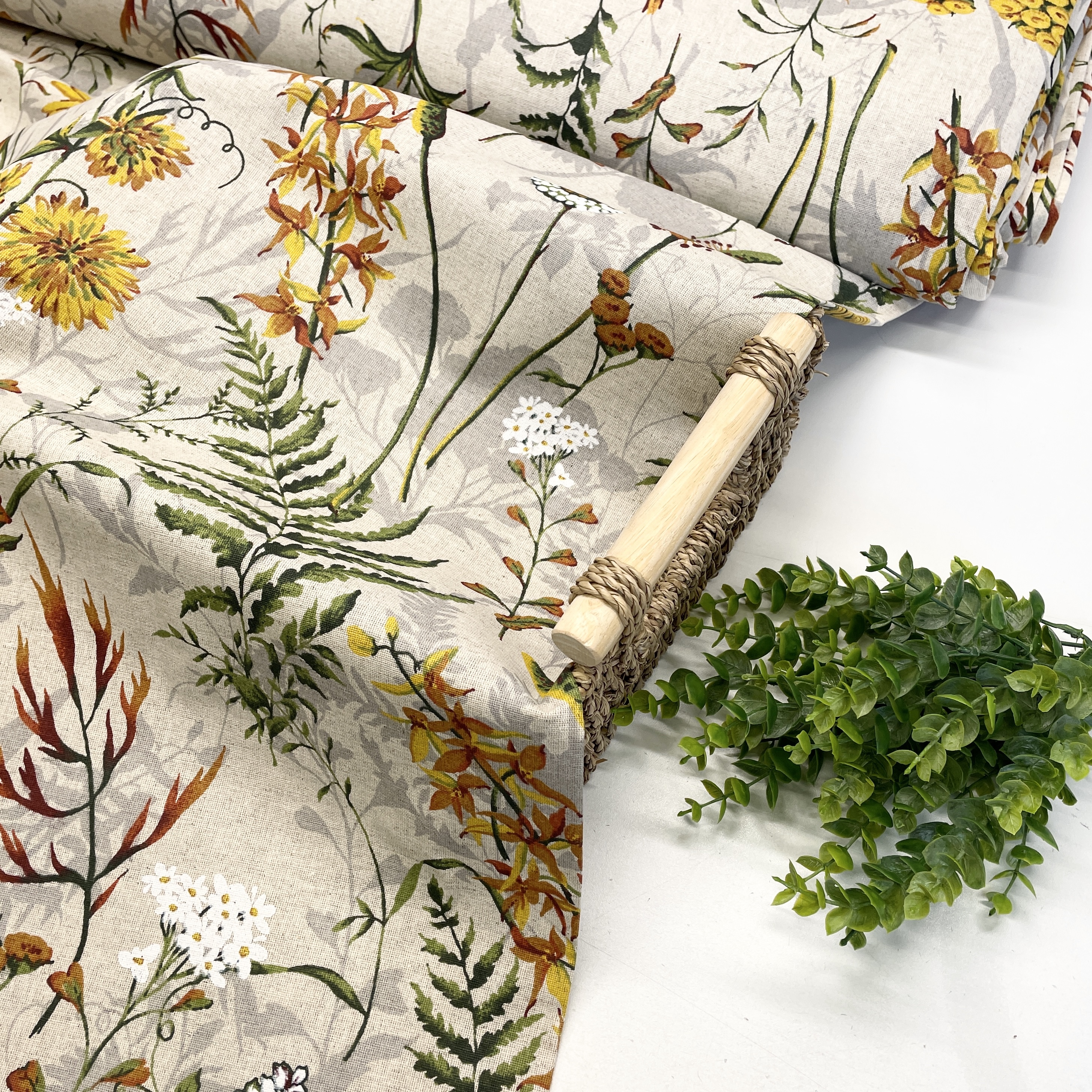 Ткань Полулён луговые травы. 30% лён, 70% хлопок. 100х150см.