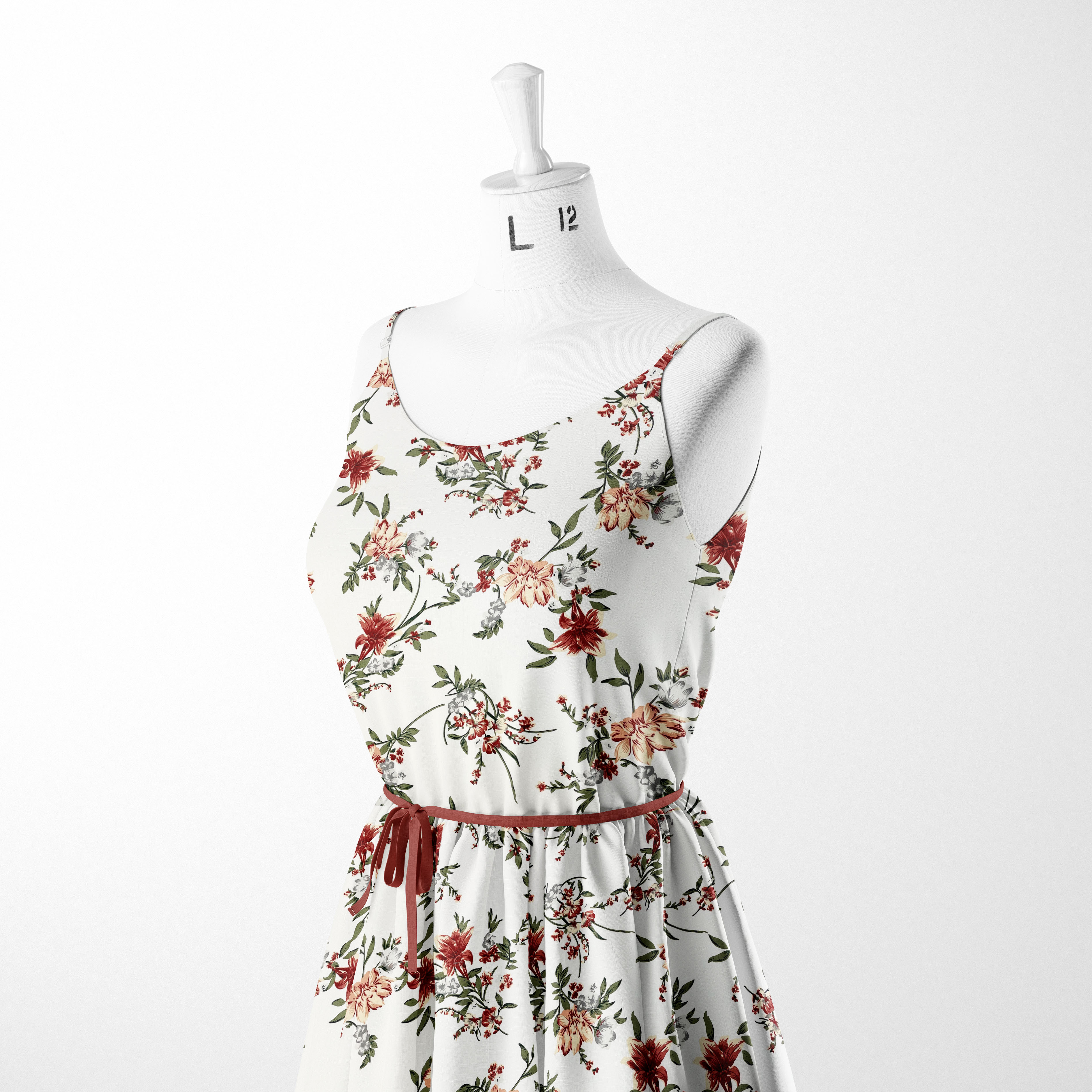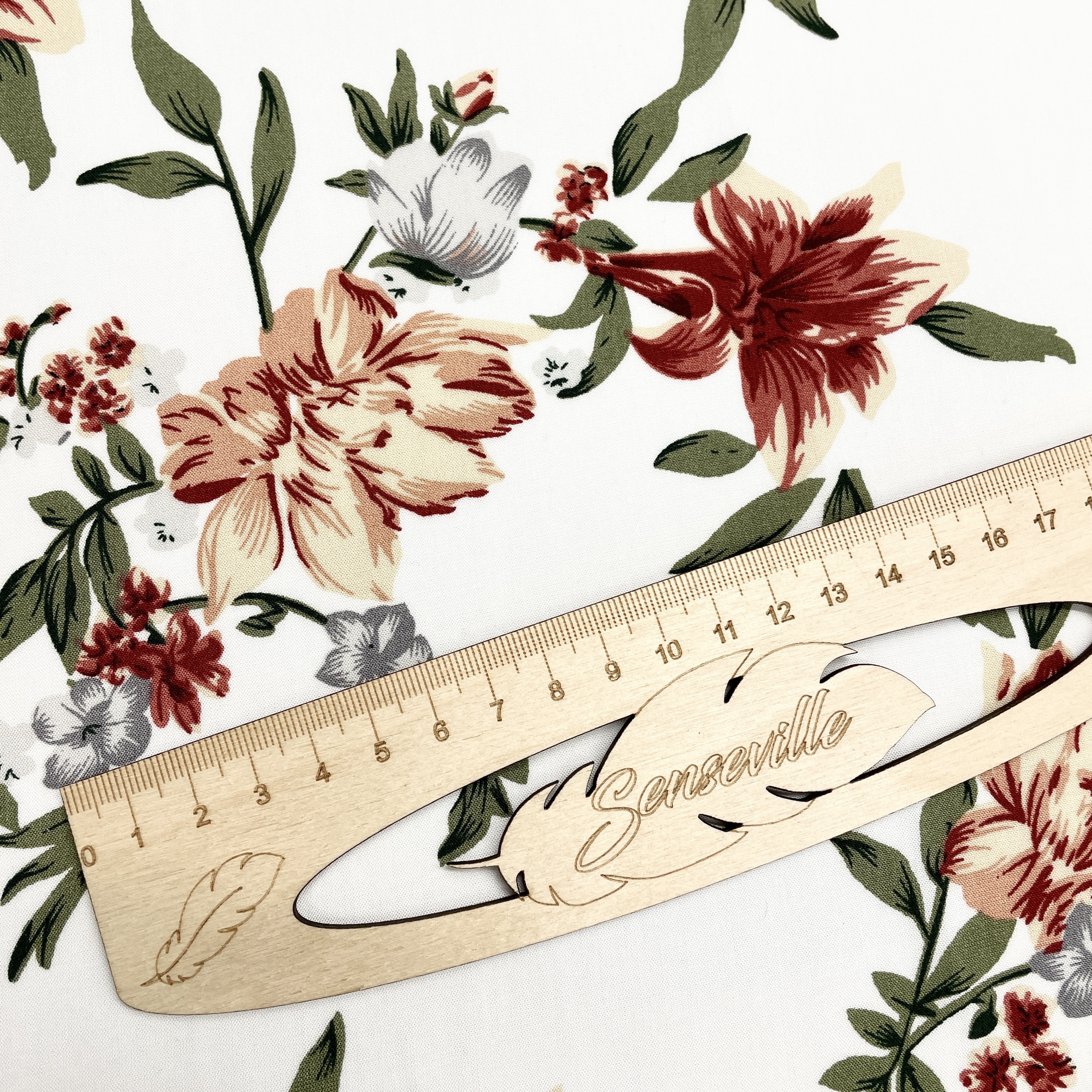 Ткань Штапель. Плательная вискоза. Райские цветы на белом. 100% вискоза. 100x150см.