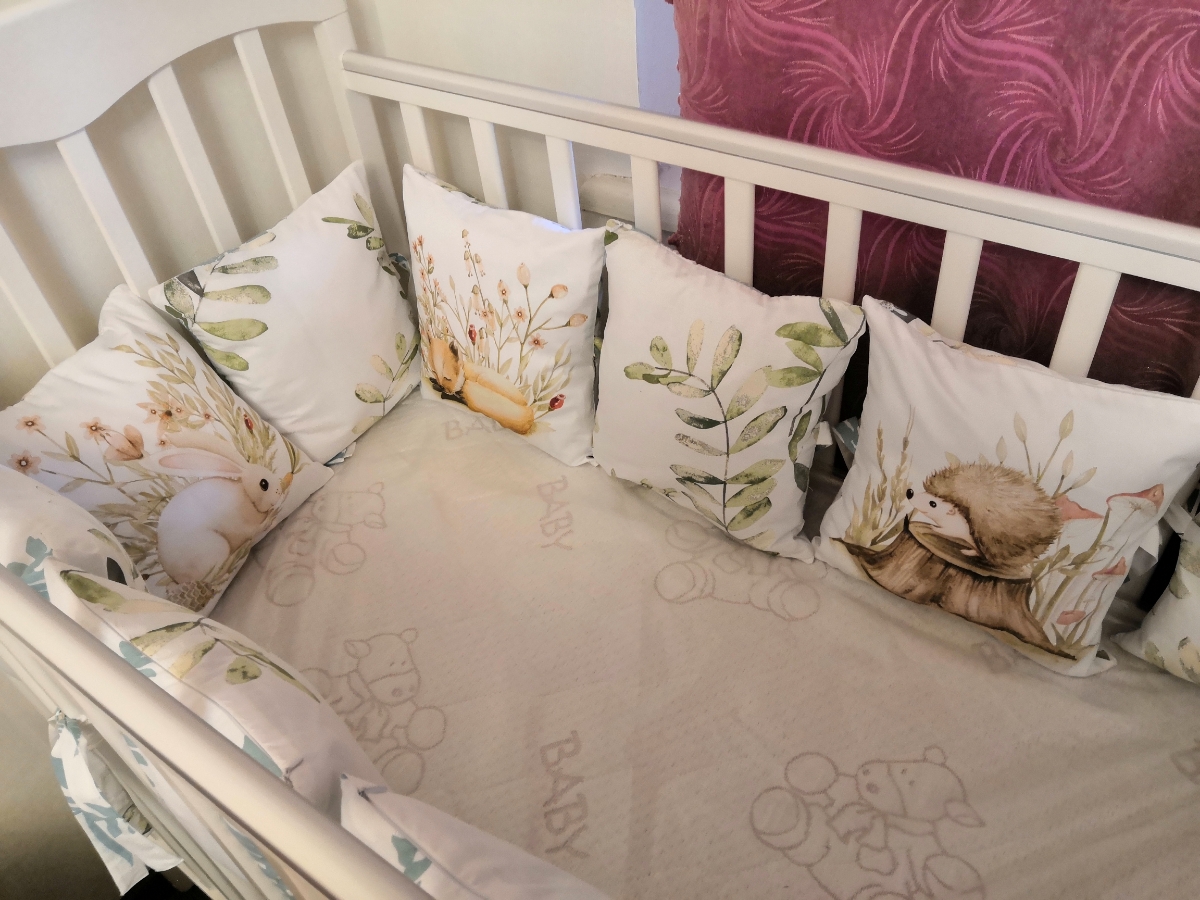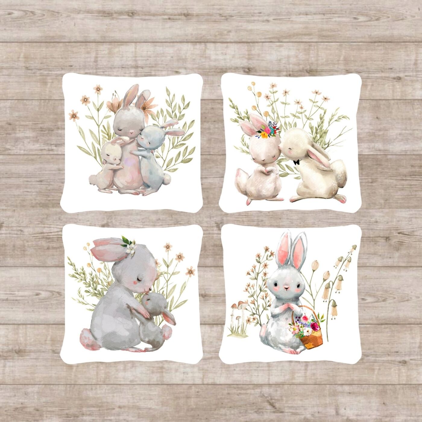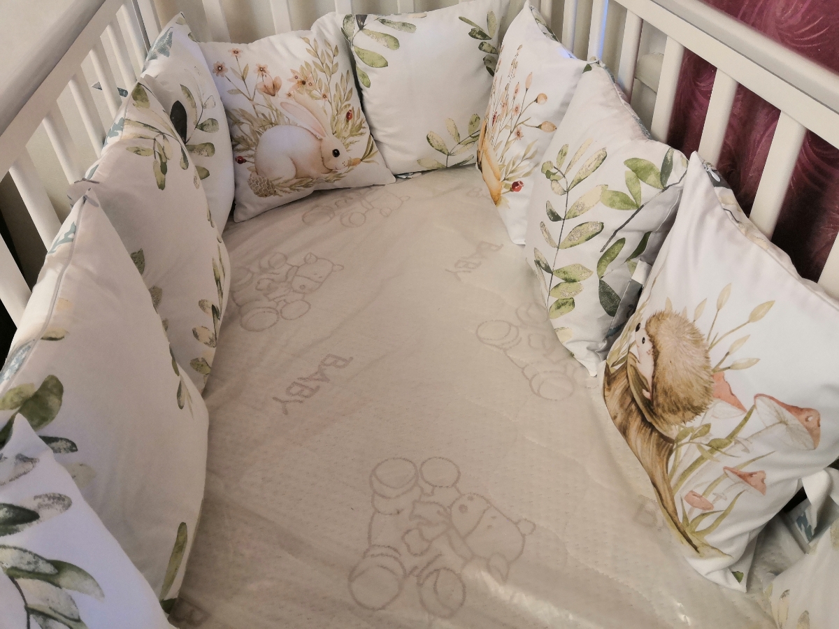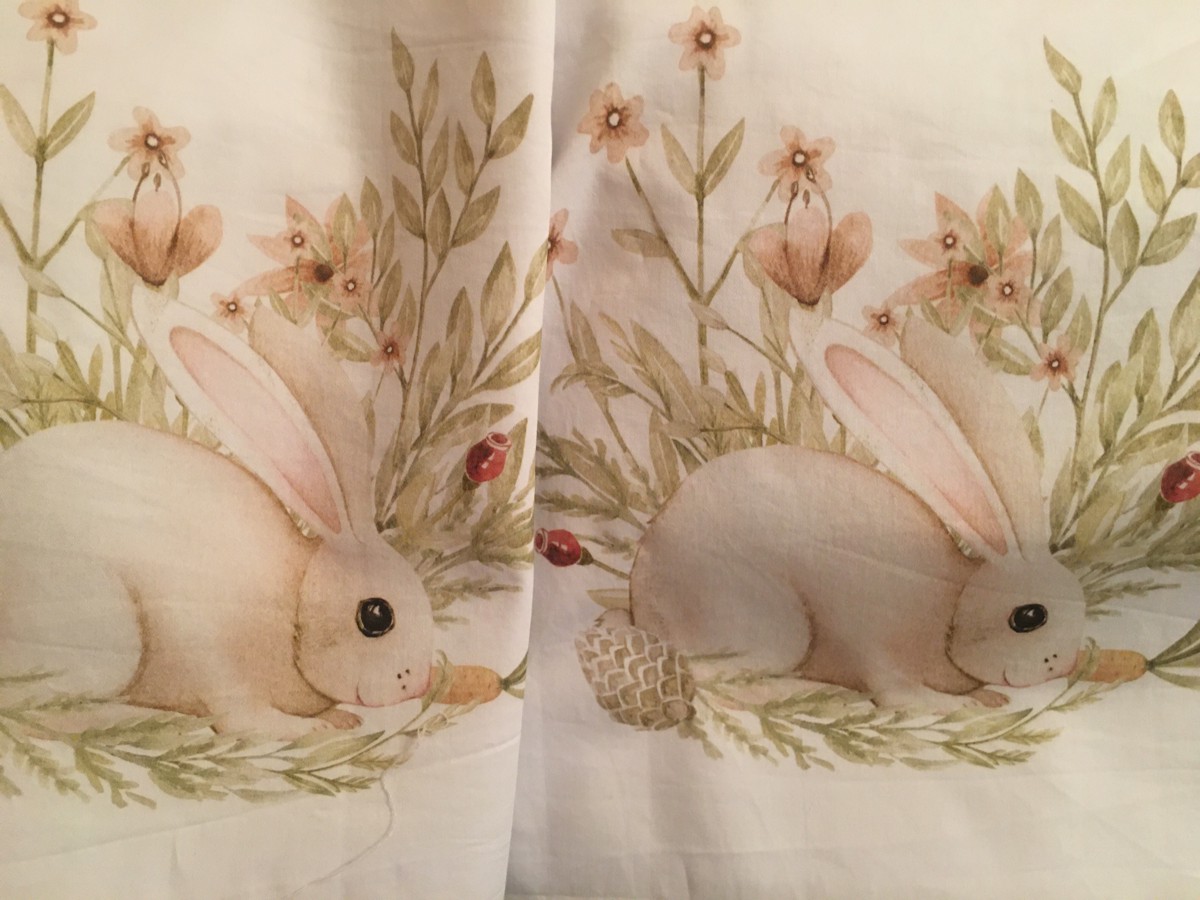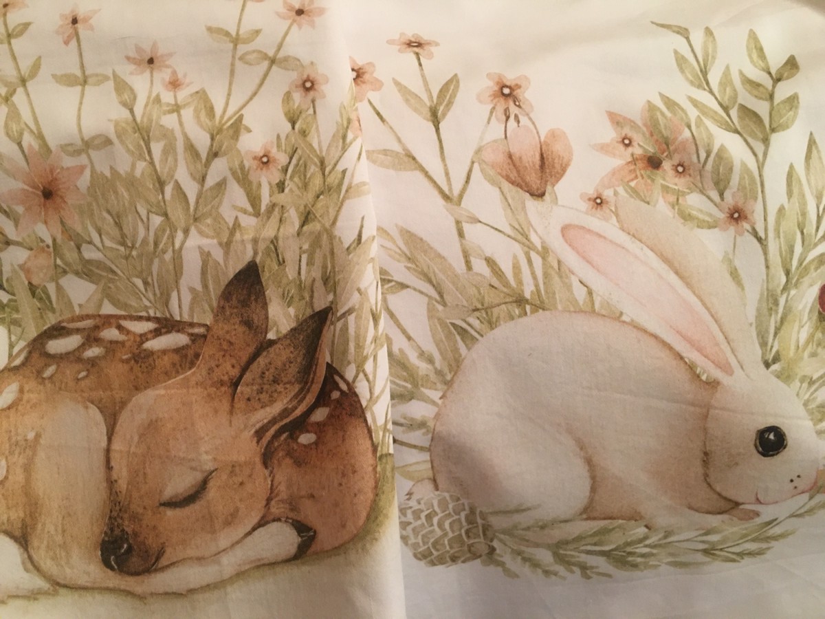Ткань Сатин. 100% хлопок. Нежные зайчики. Набор панелей для пошива подушек бортиков. 4шт / набор.
