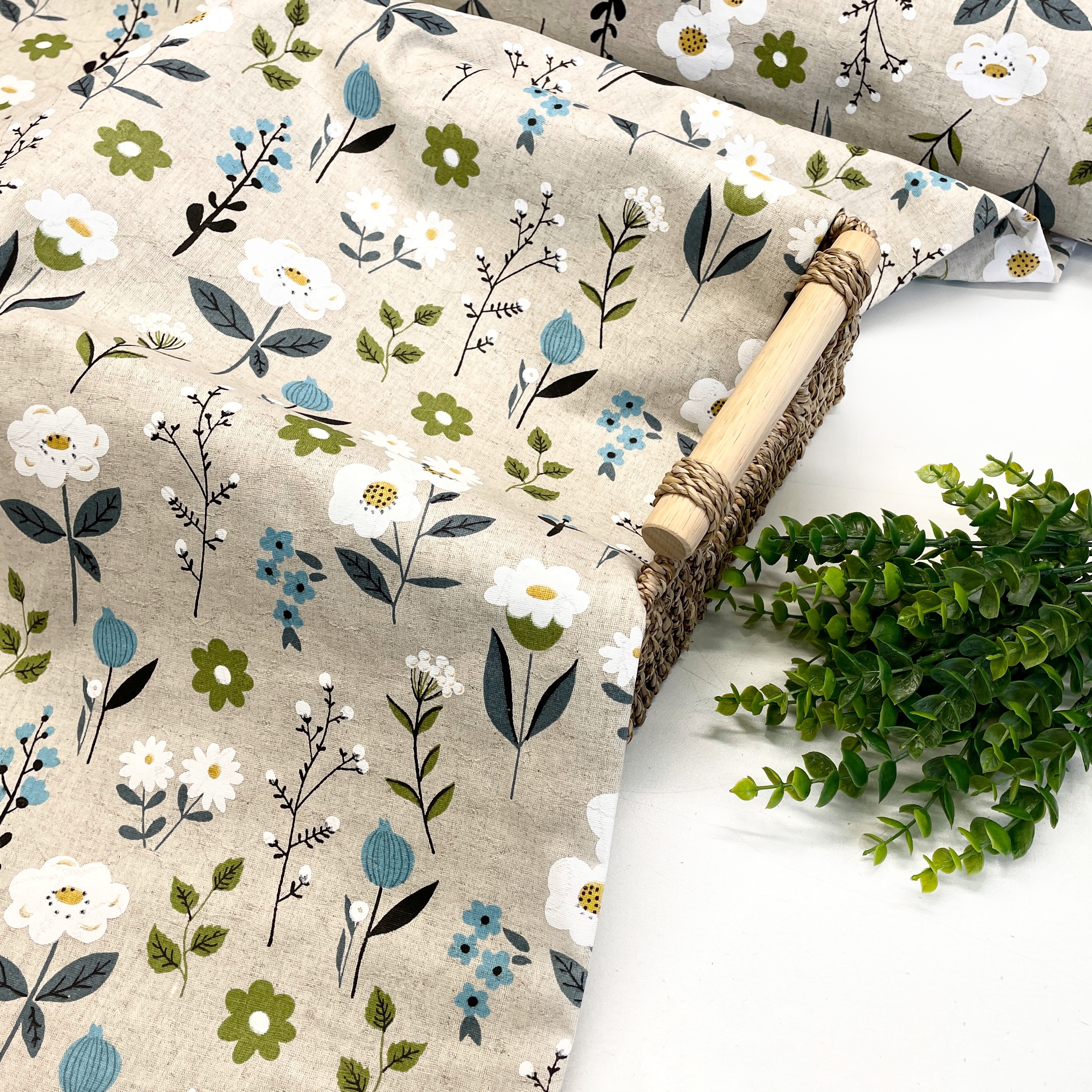 Ткань Полулён луговые травы. 30% лён, 70% хлопок. 100х150см.