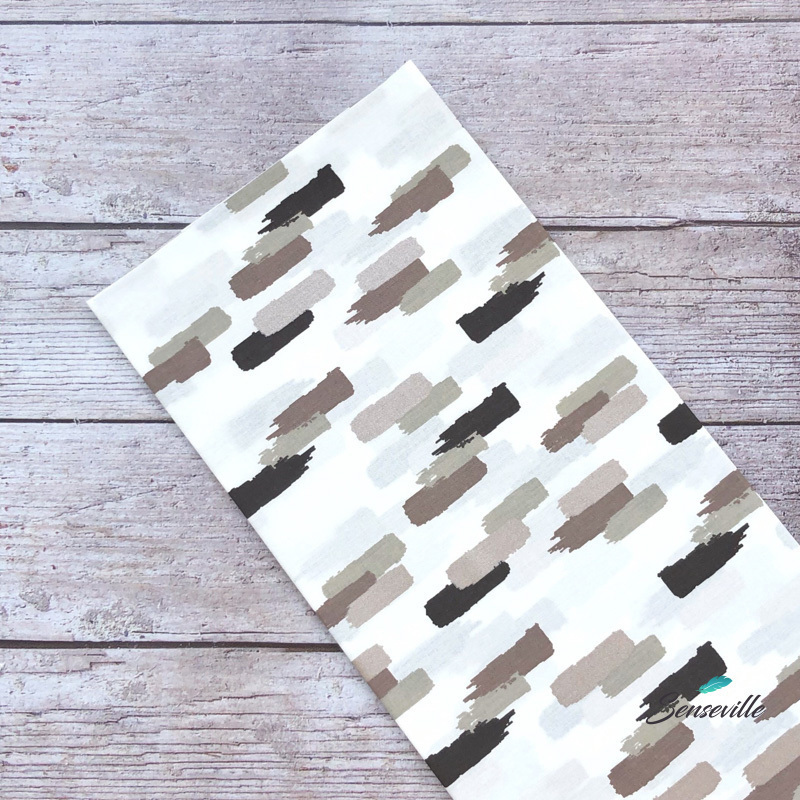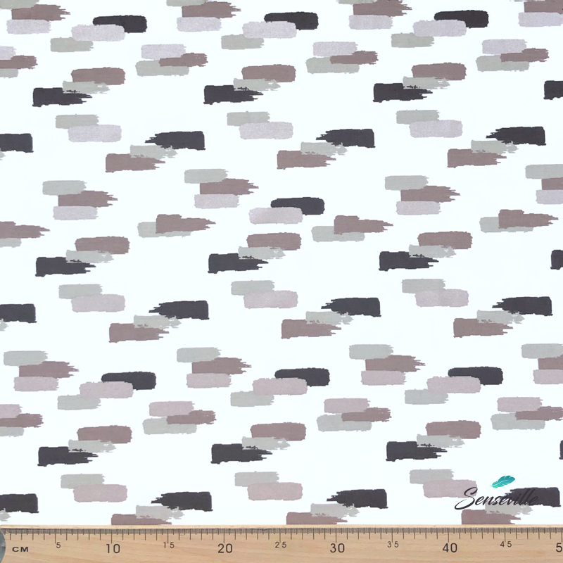 Ткань Люкс Ранфорс (Поплин) с глиттером. 100% хлопок, Коричневые и бежевые штрихи на белом.100х240см
