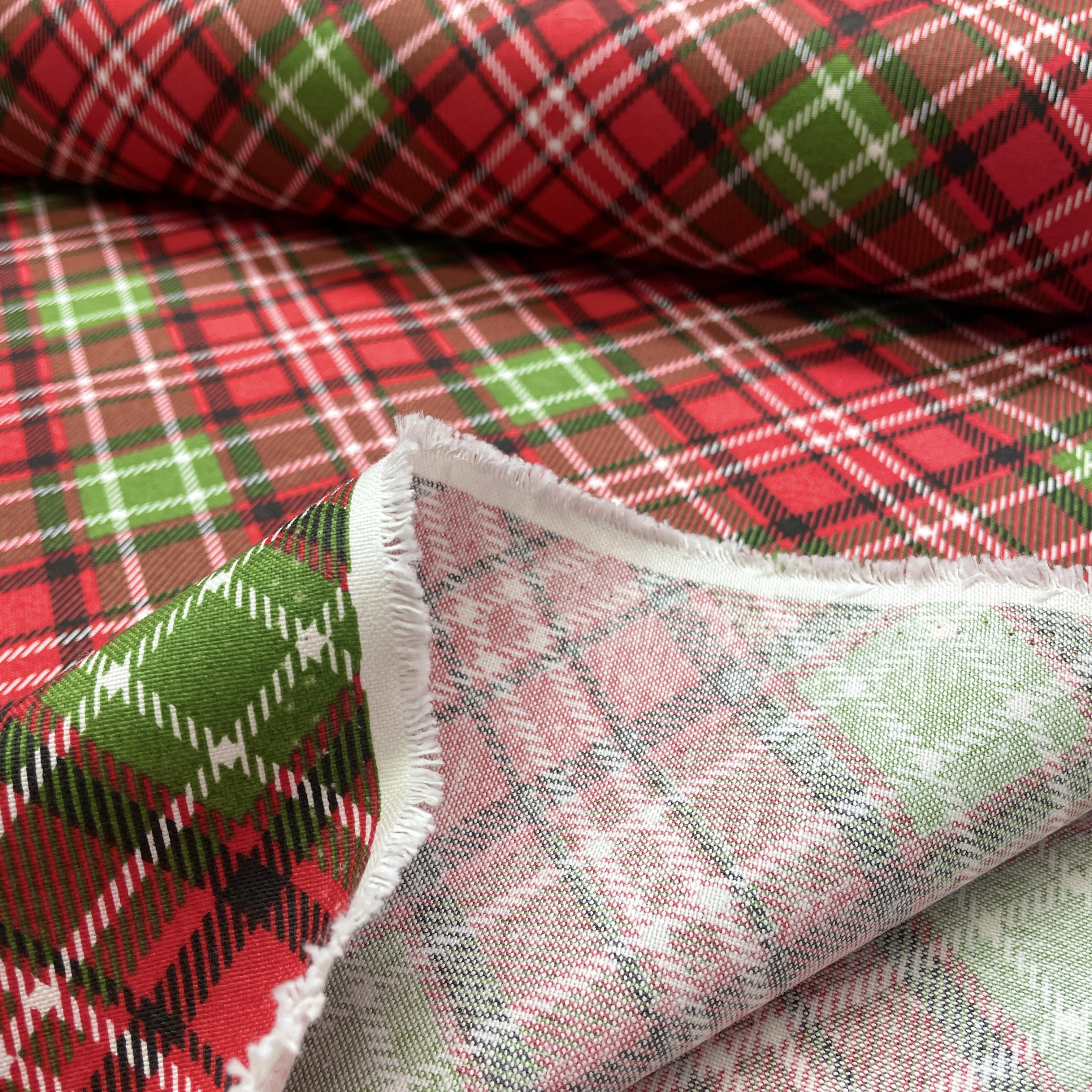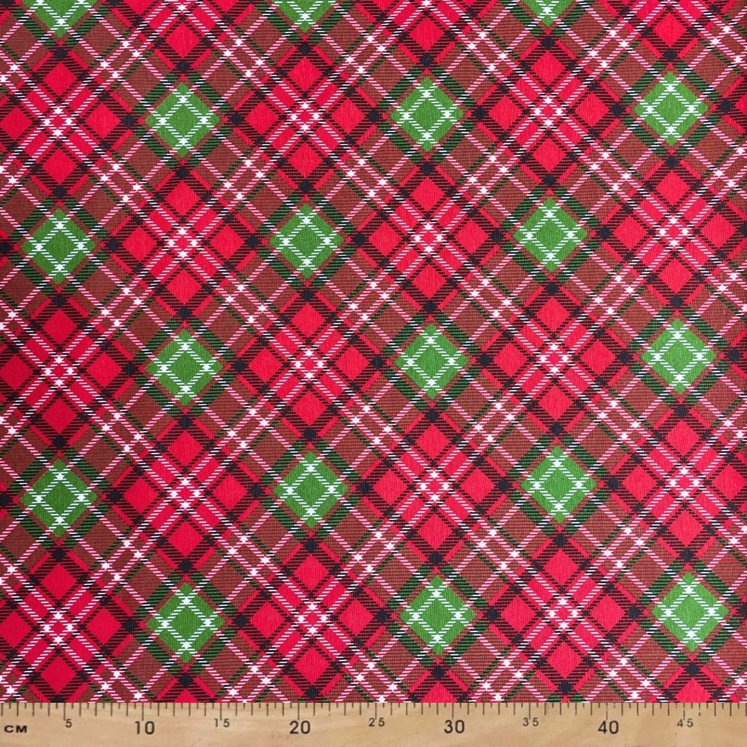 Ткань Дак (DUCK, Панама). 65% хлопок, 35% полиэстер. Красно-зеленая клетка. 100х180см