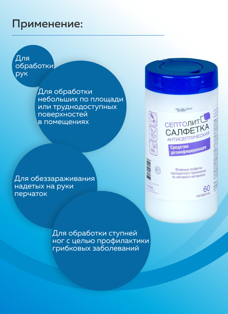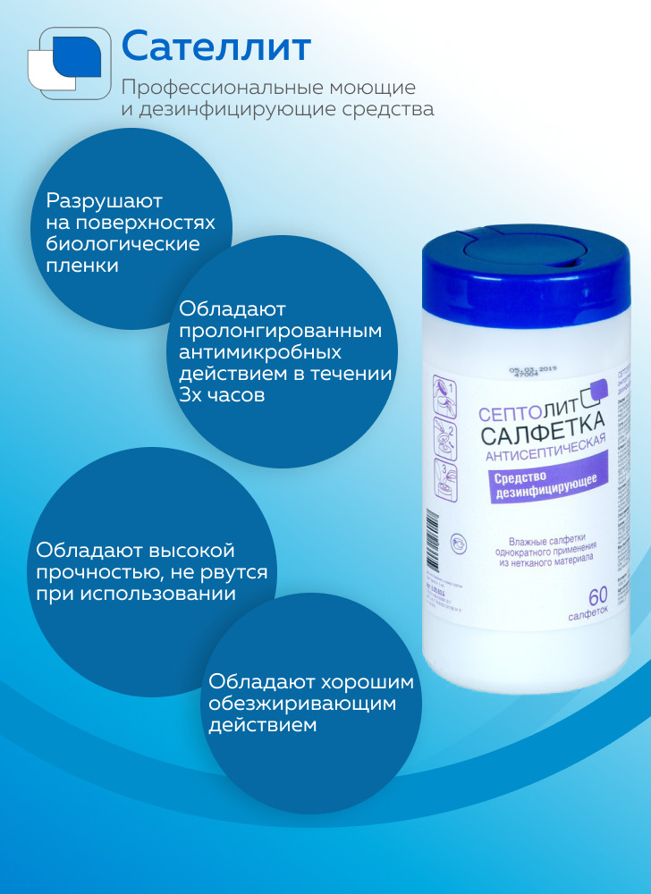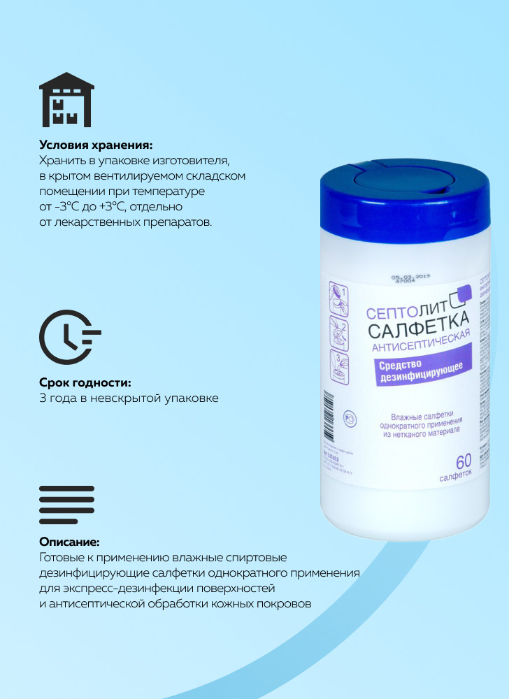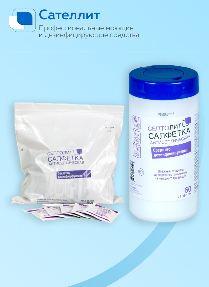 Дезинфицирующие салфетки "Септолит Салфетка антисептическая", 60 шт в банке
