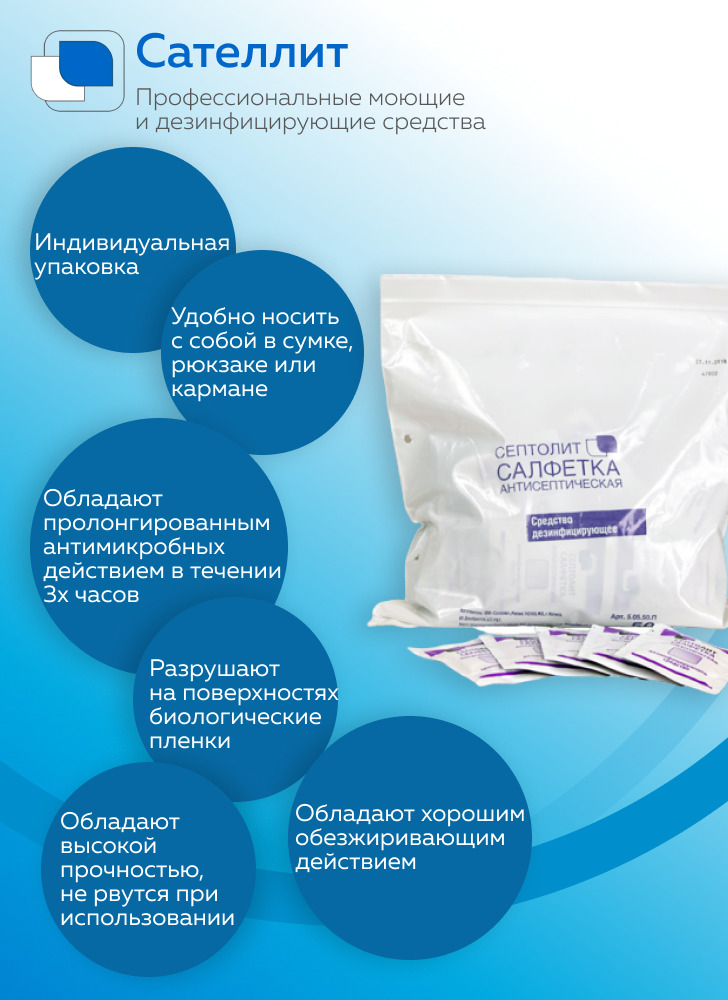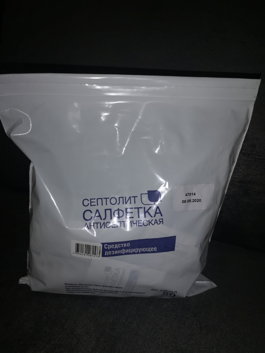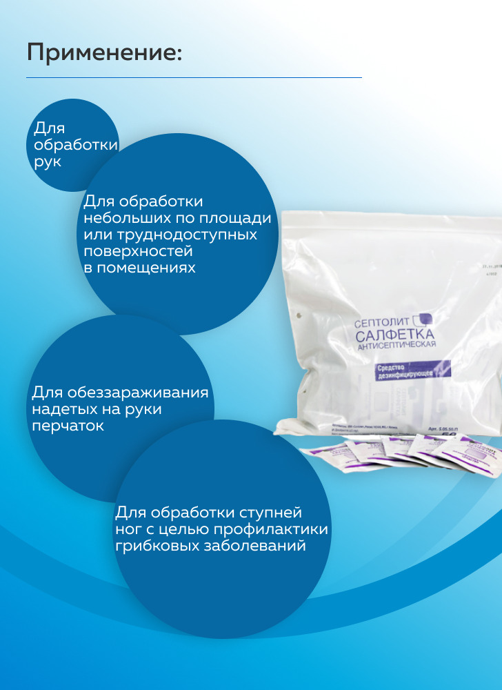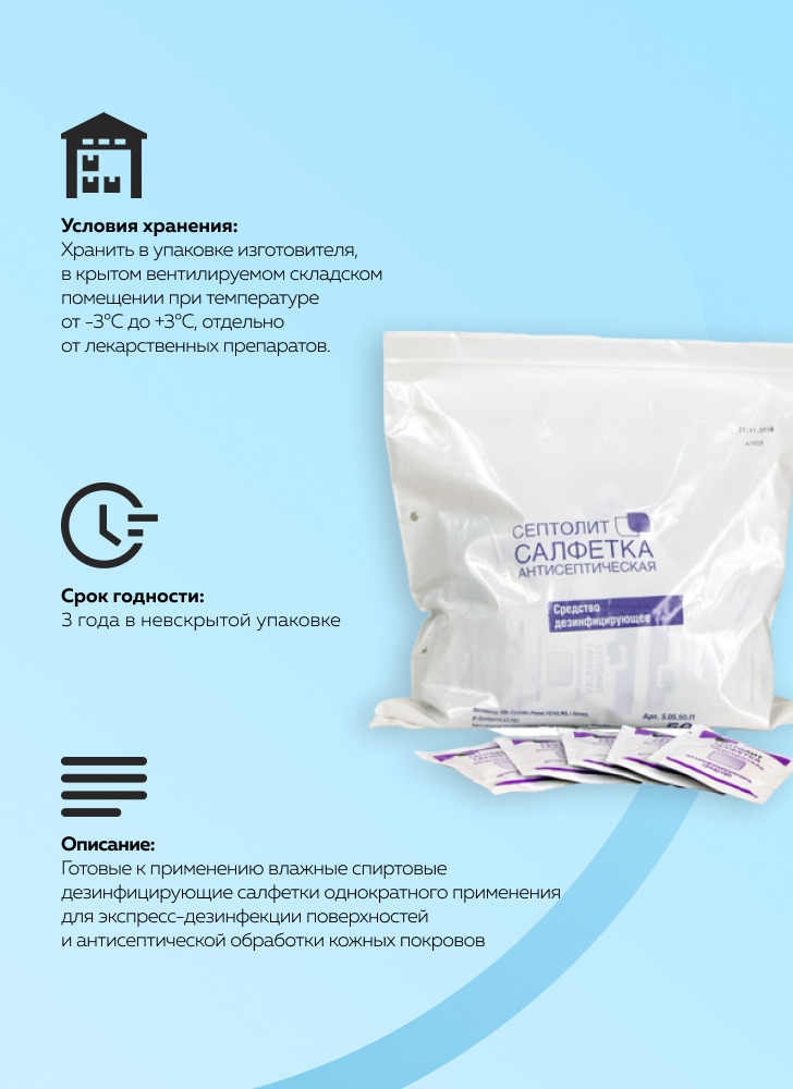 Дезинфицирующие салфетки размер 13,5х18 см"Септолит Салфетка антисептическая", 50 шт. в п/э пакете