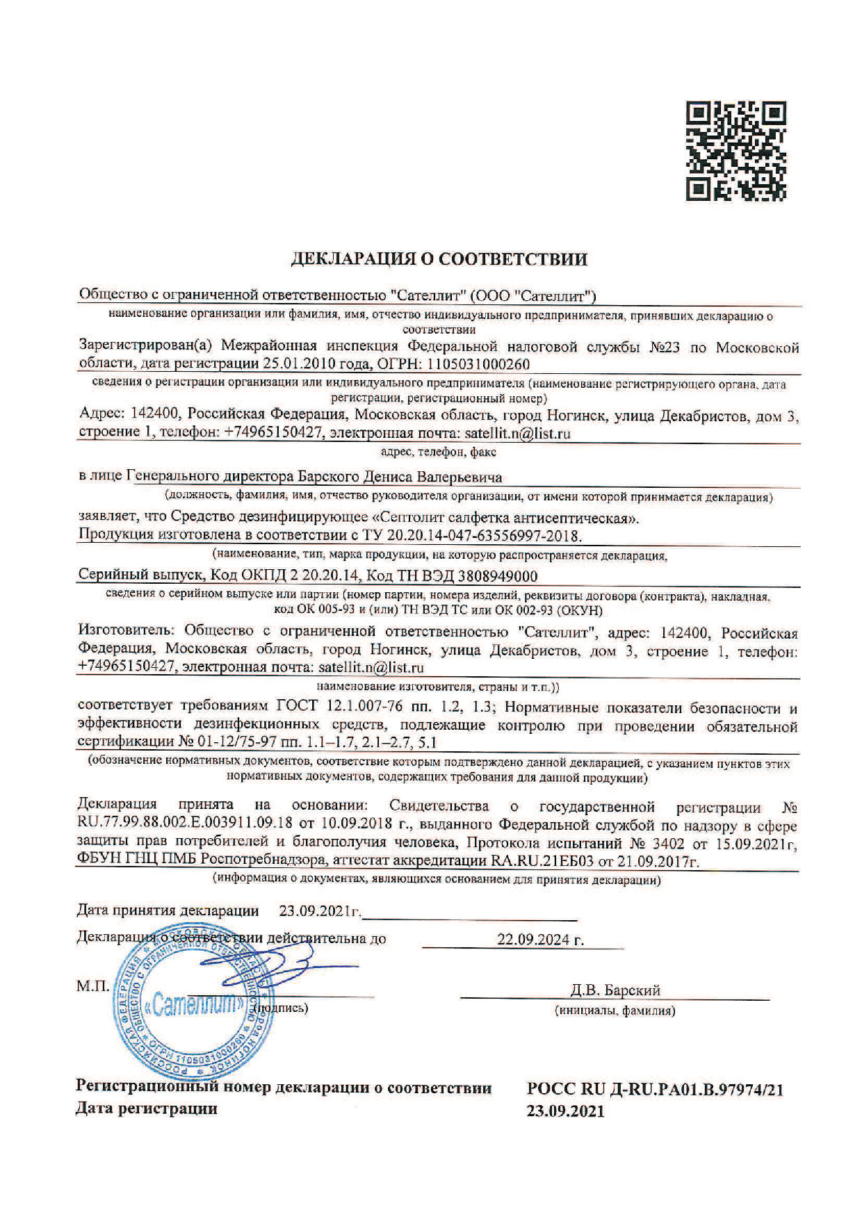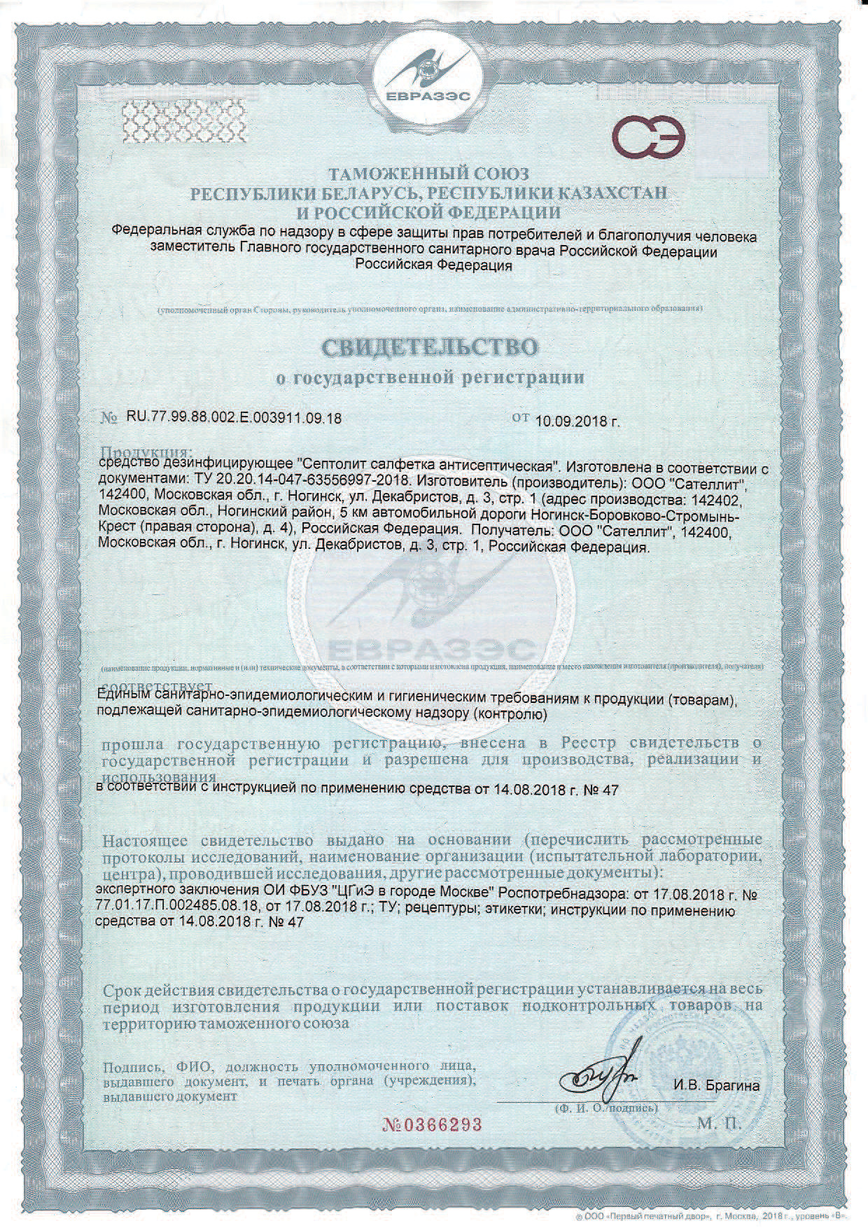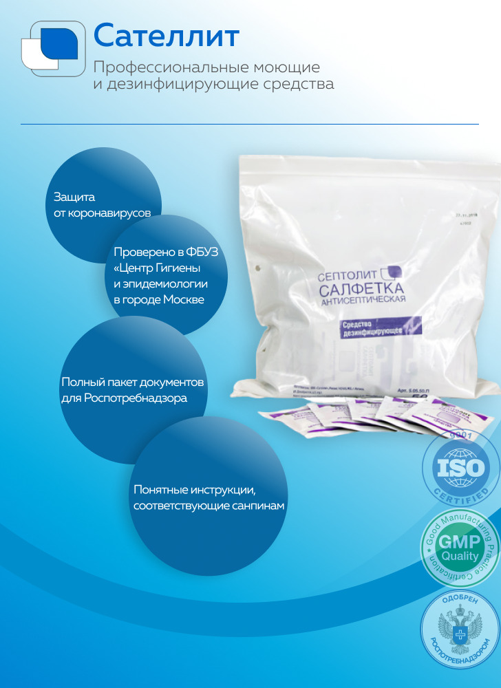 Дезинфицирующие салфетки размер 13,5х18 см"Септолит Салфетка антисептическая", 50 шт. в п/э пакете