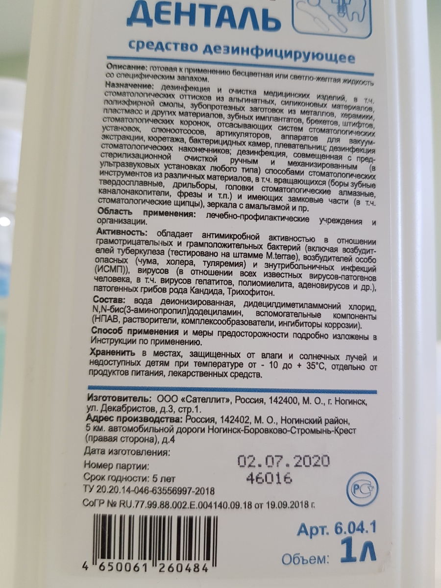 Дезинфицирующее средство "Септолит Денталь", 1 литр