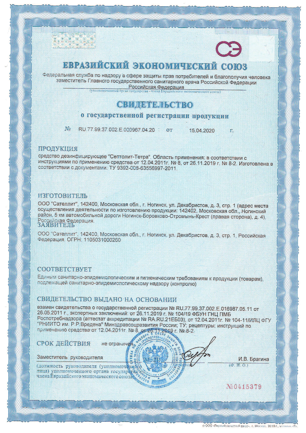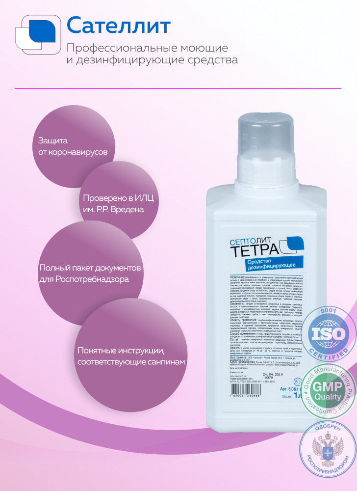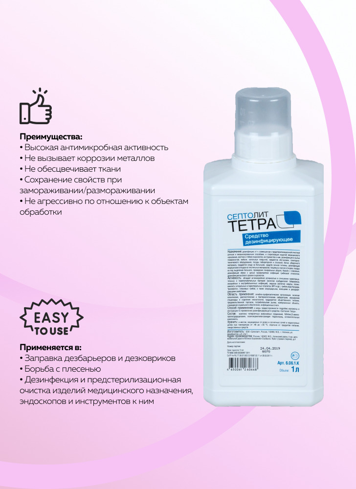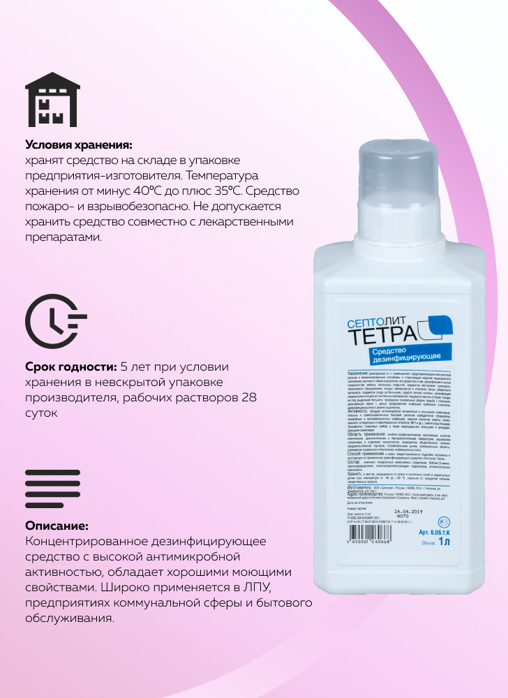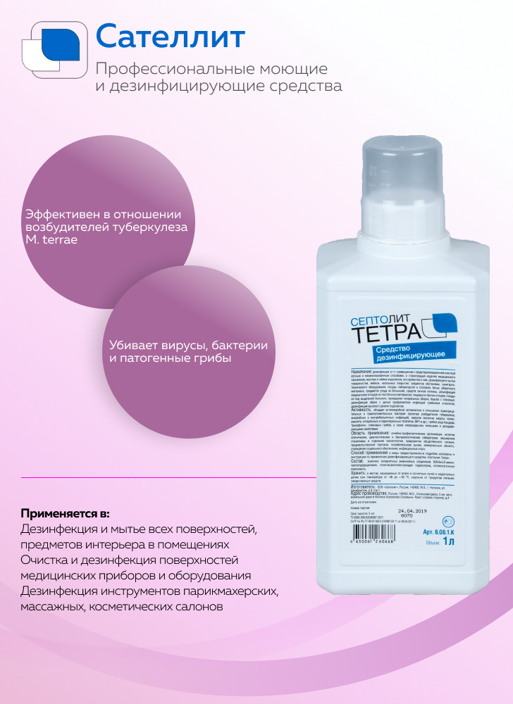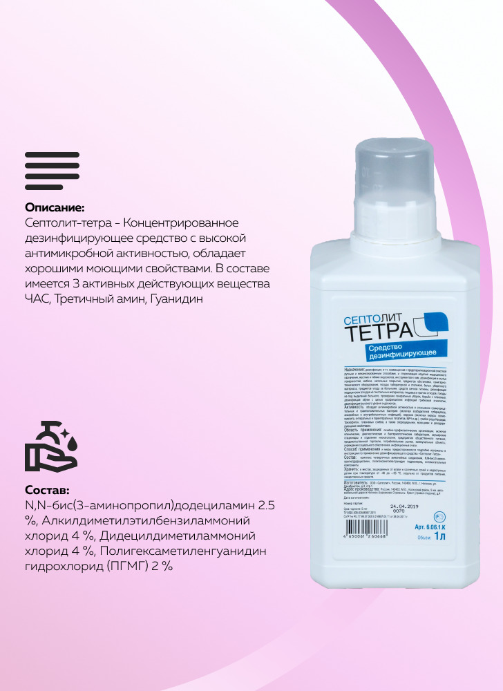 Дезинфицирующее средство "Септолит Тетра", 1 литр с мерным колпачком