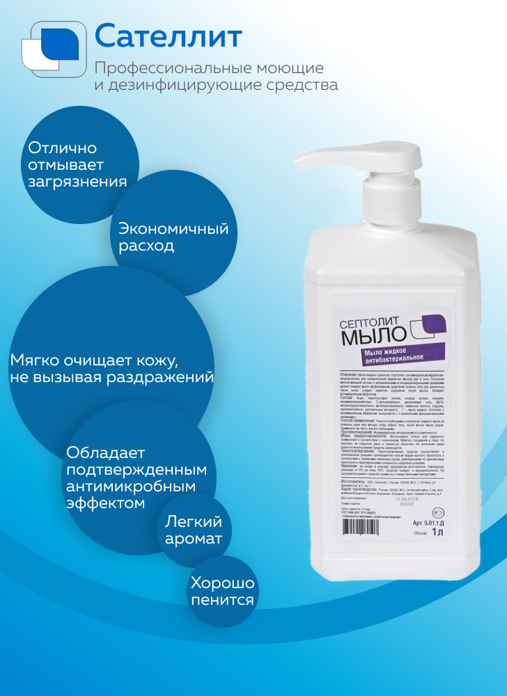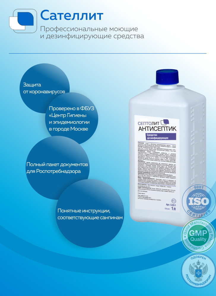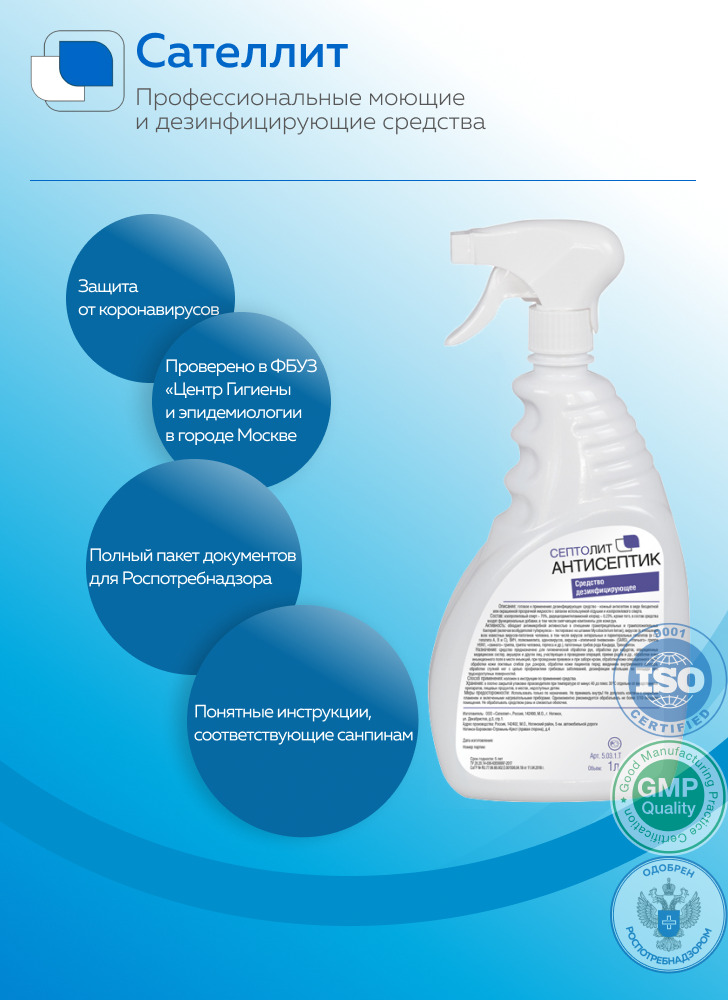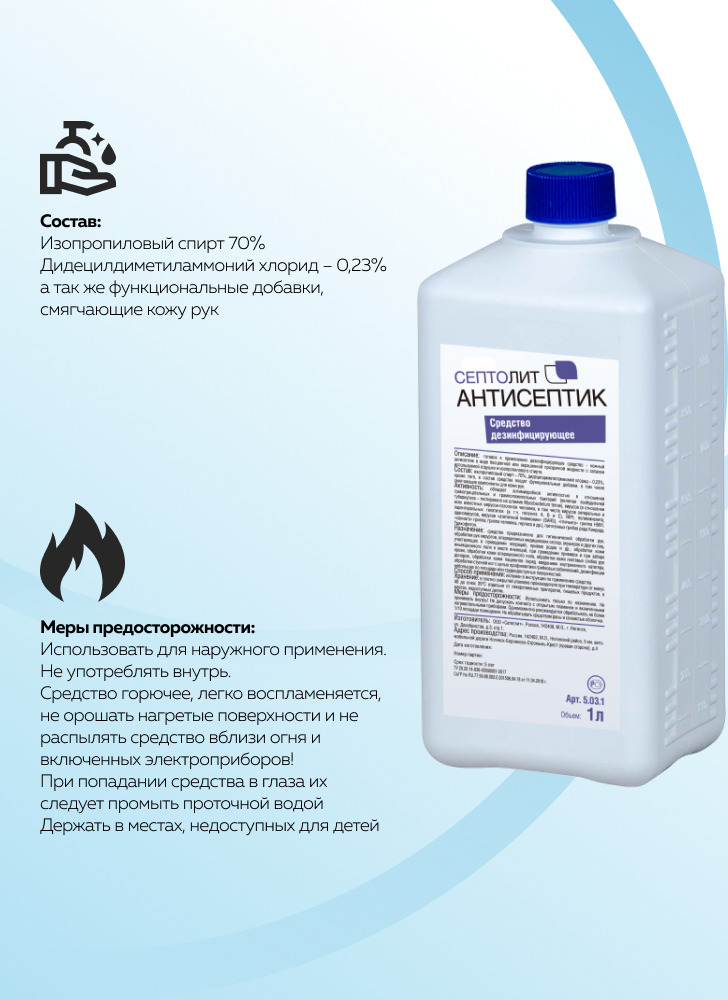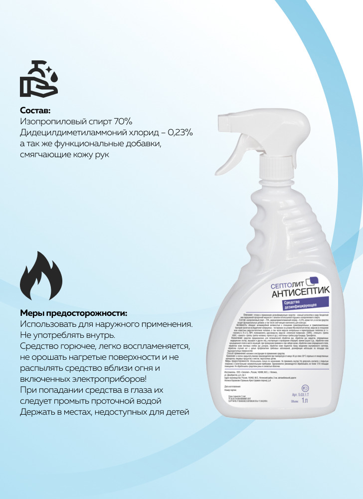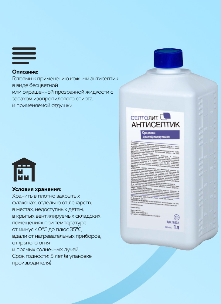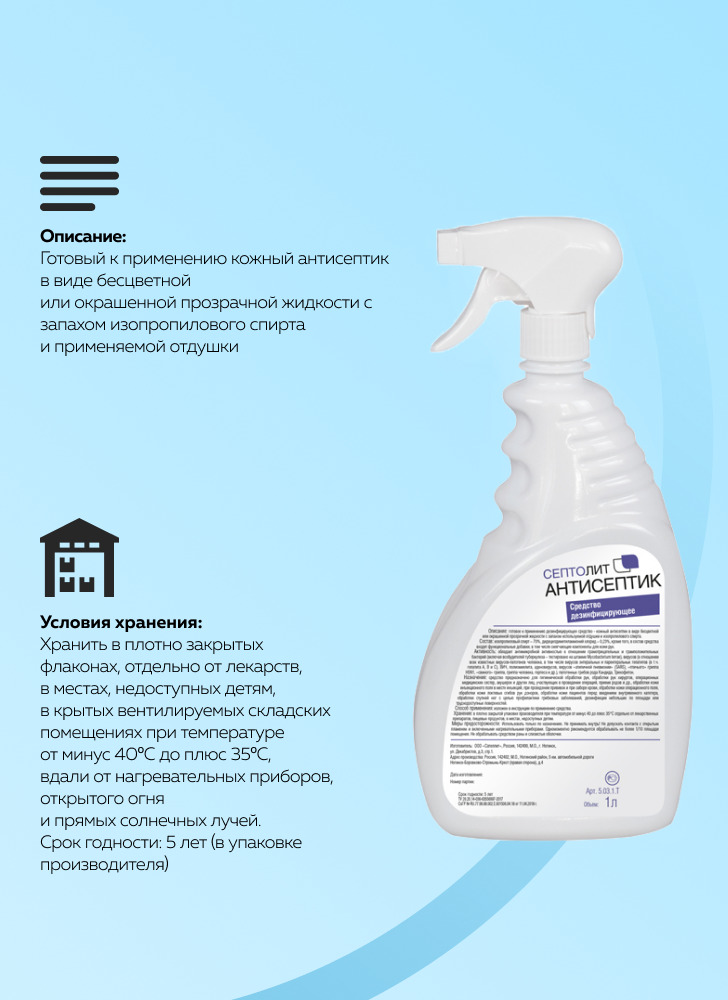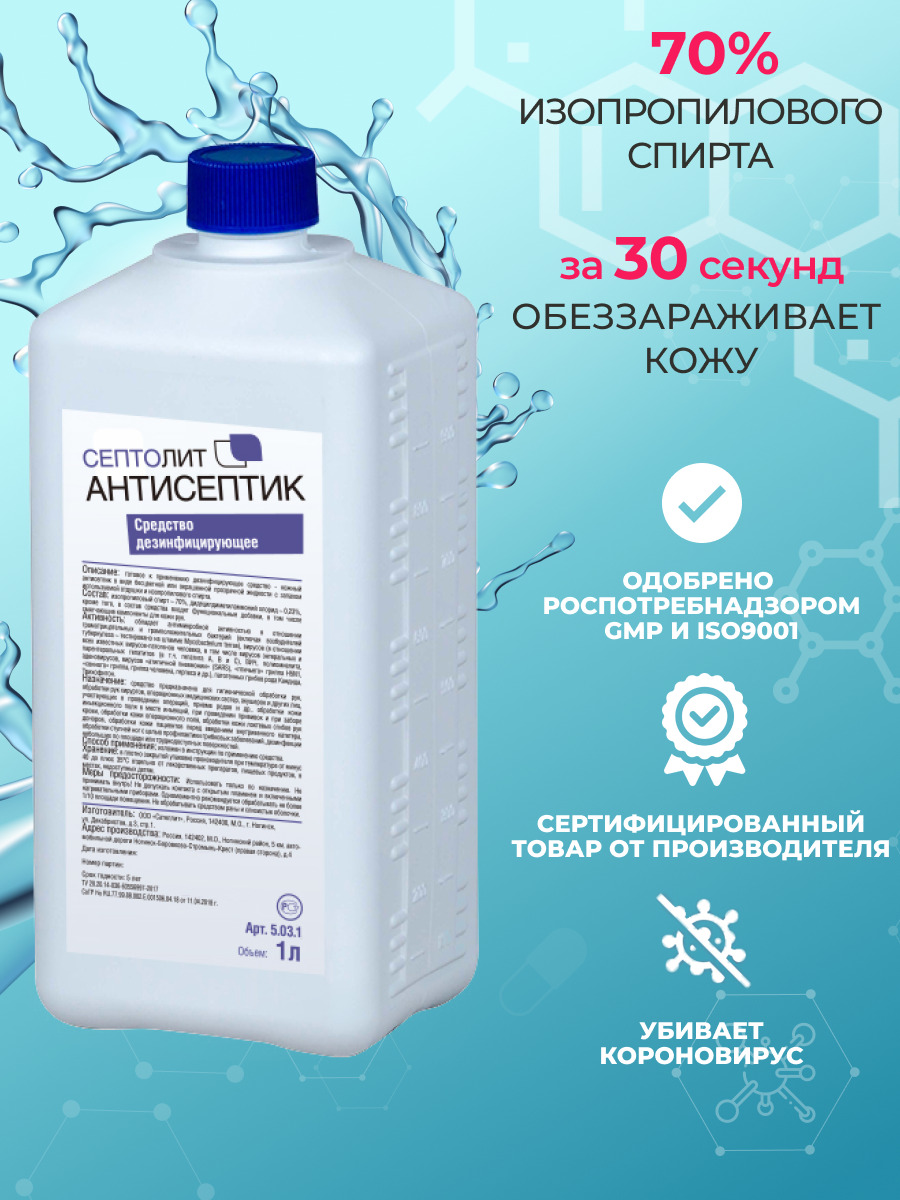 Септолит-Антисептик/ спиртовой кожный антисептик 1 л / для обработки и рук и поверхностей (УМР)
