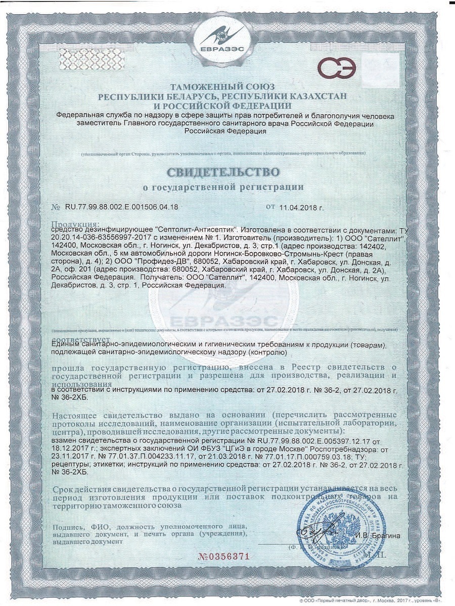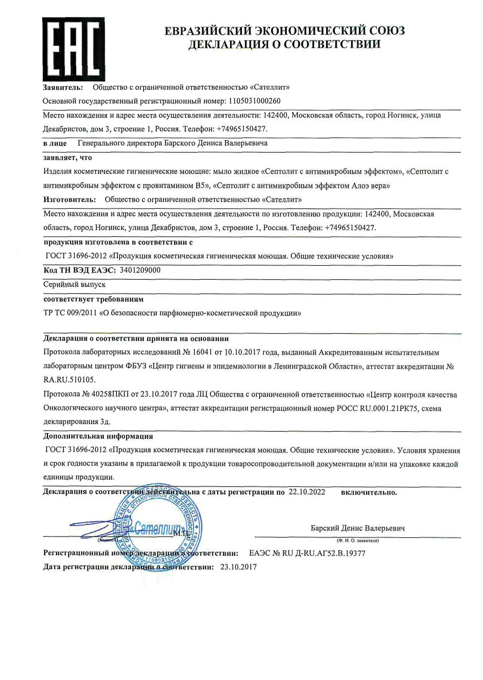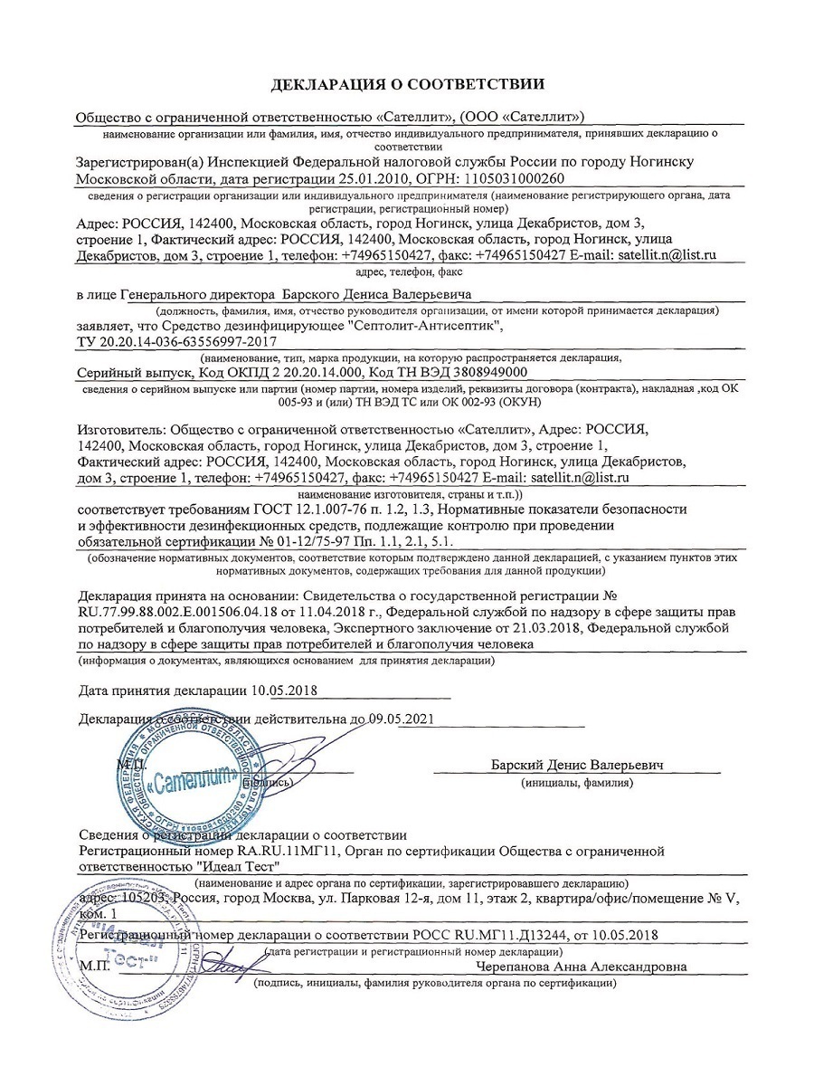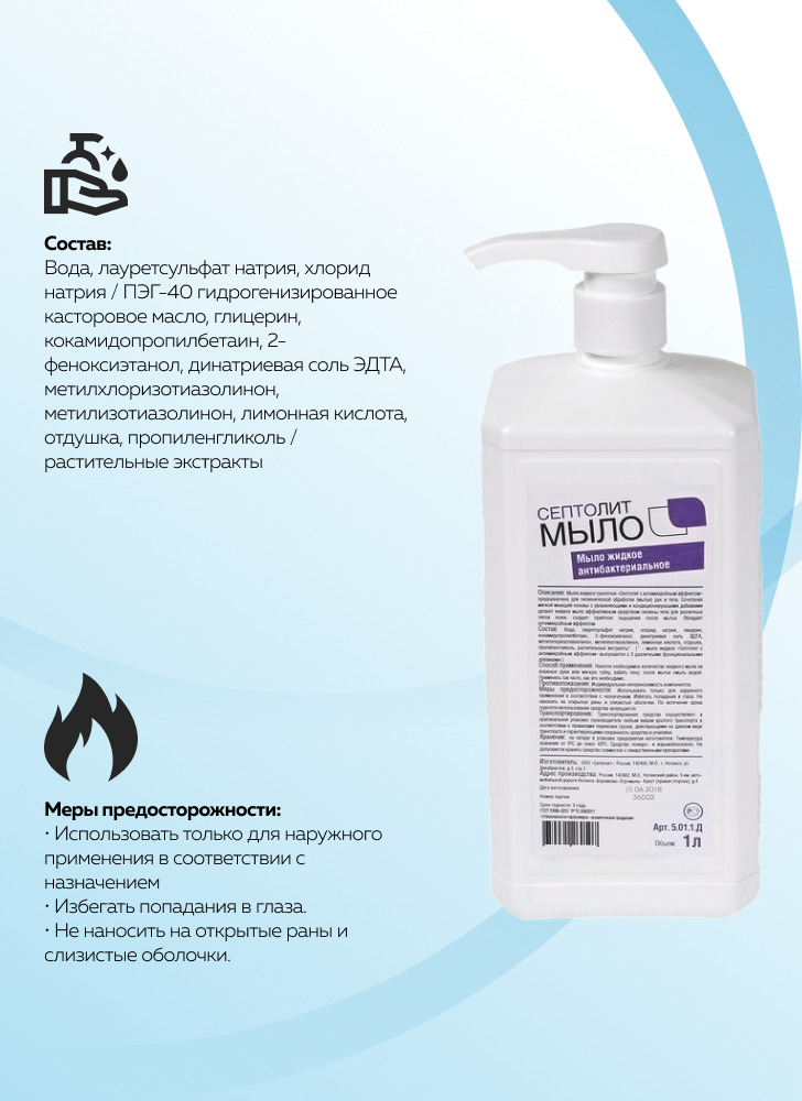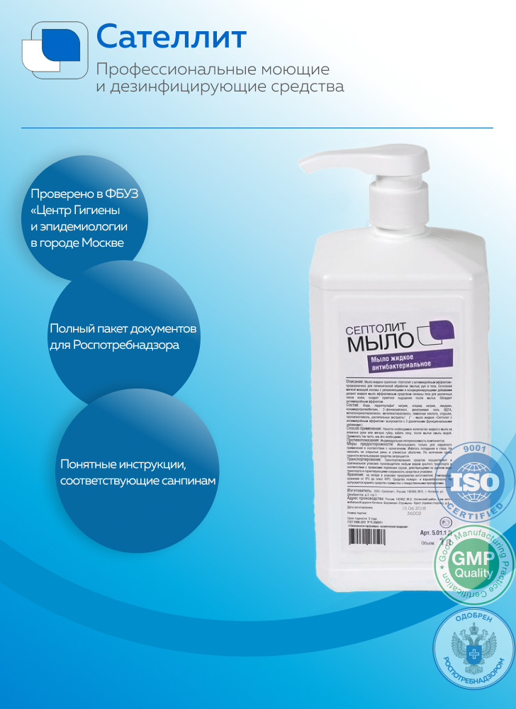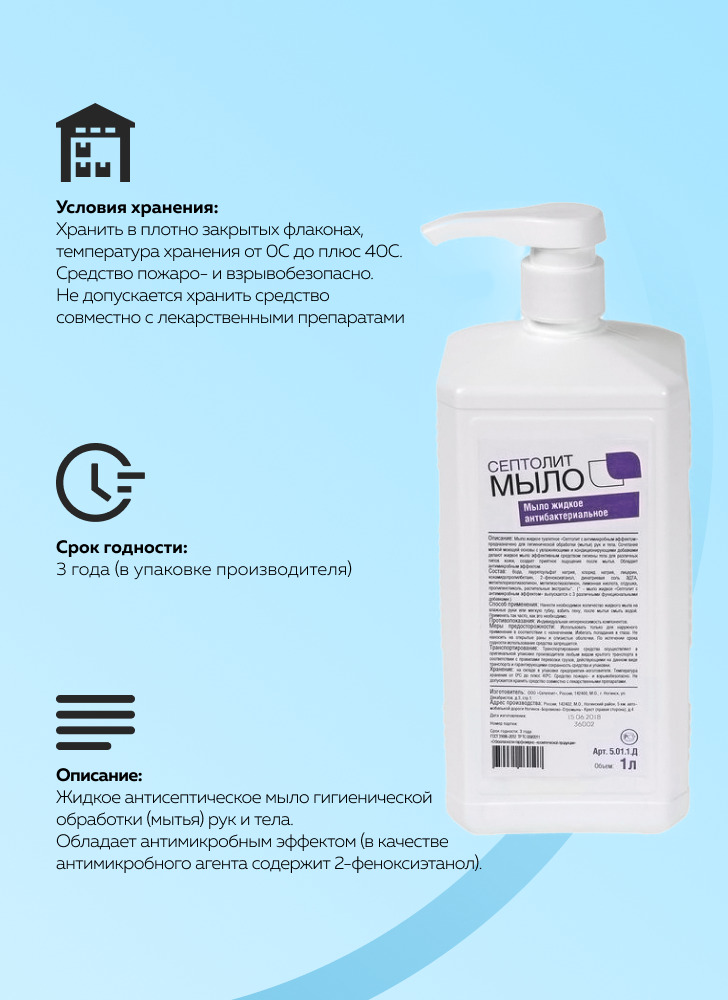 Септолит-Антисептик/ спиртовой кожный антисептик 1 л / для обработки и рук и поверхностей (УМР)