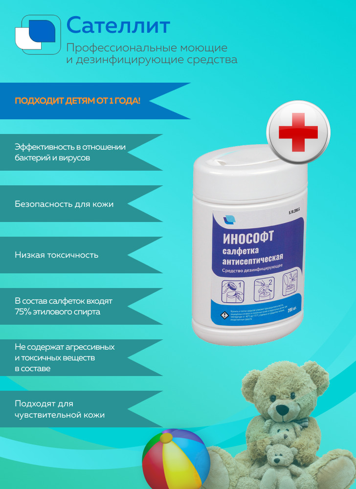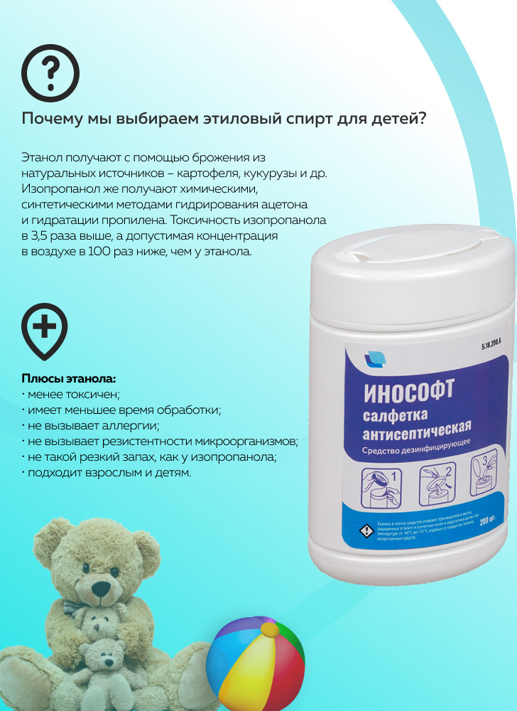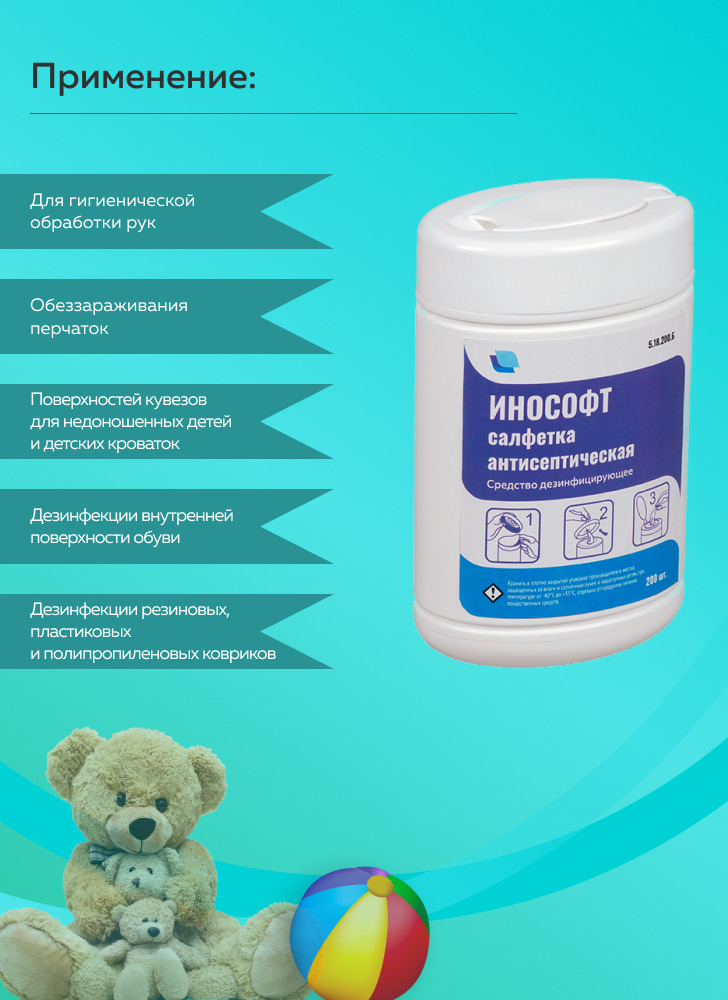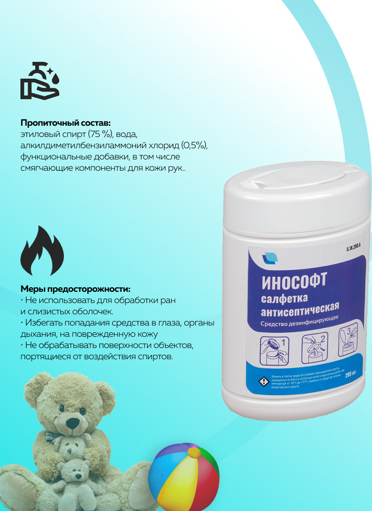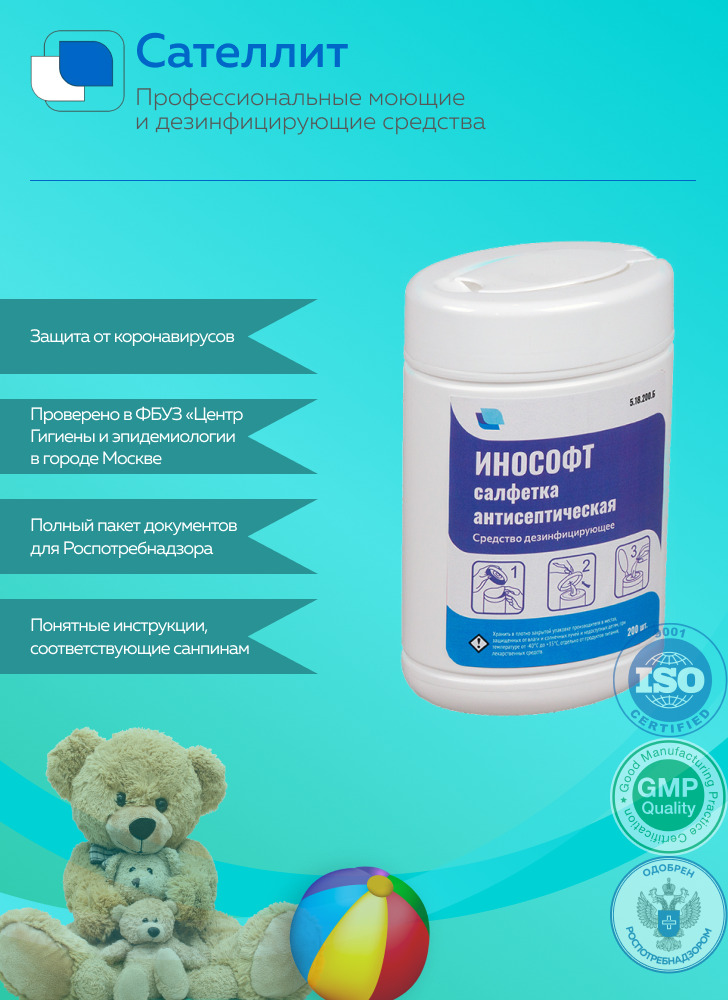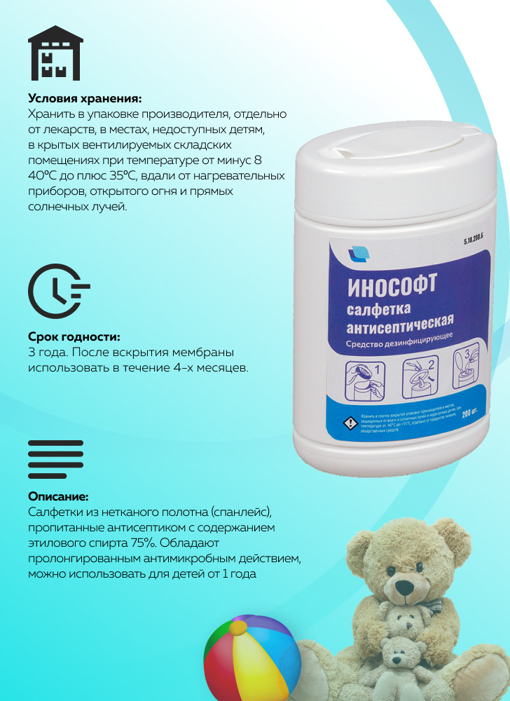 Антисептическая салфетка Инософт №200 банка, на этиловом спирте (75 %)