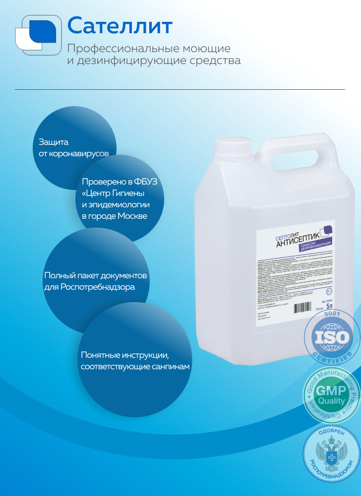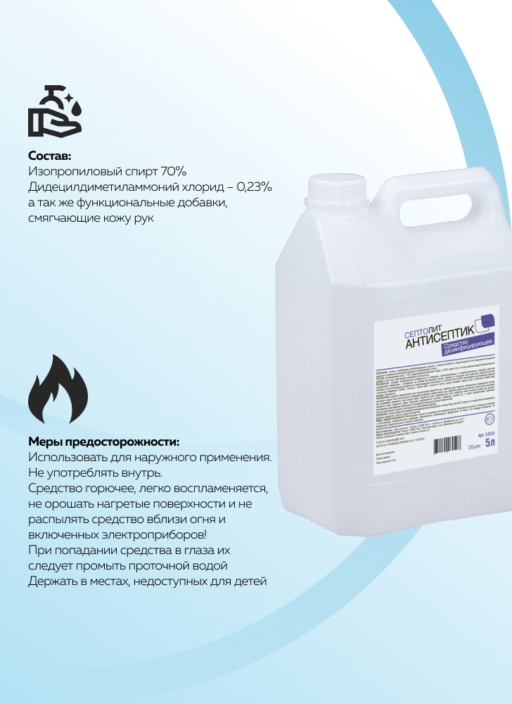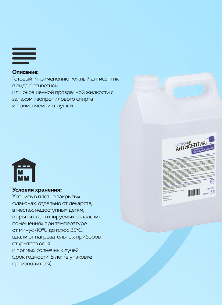 Септолит-Антисептик/ спиртовой кожный антисептик 5 л / для обработки и рук и поверхностей