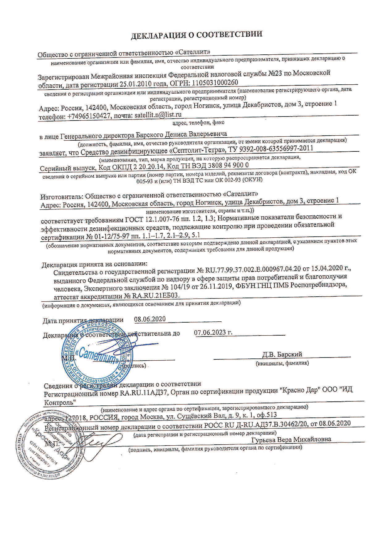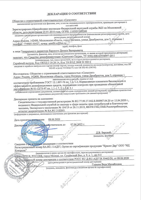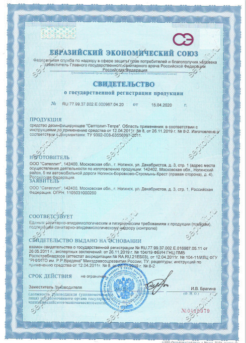 Дезинфицирующее средство "Септолит Тетра", 1л.