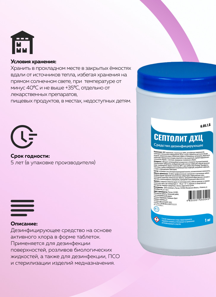 Дезинфицирующее средство "Септолит ДХЦ" 1 кг