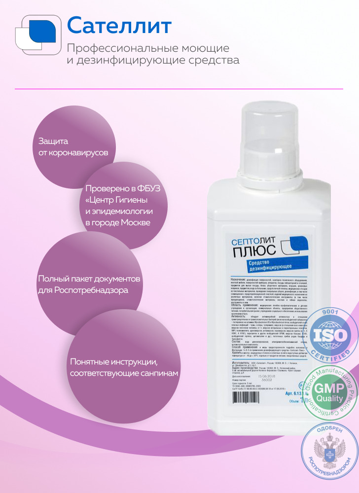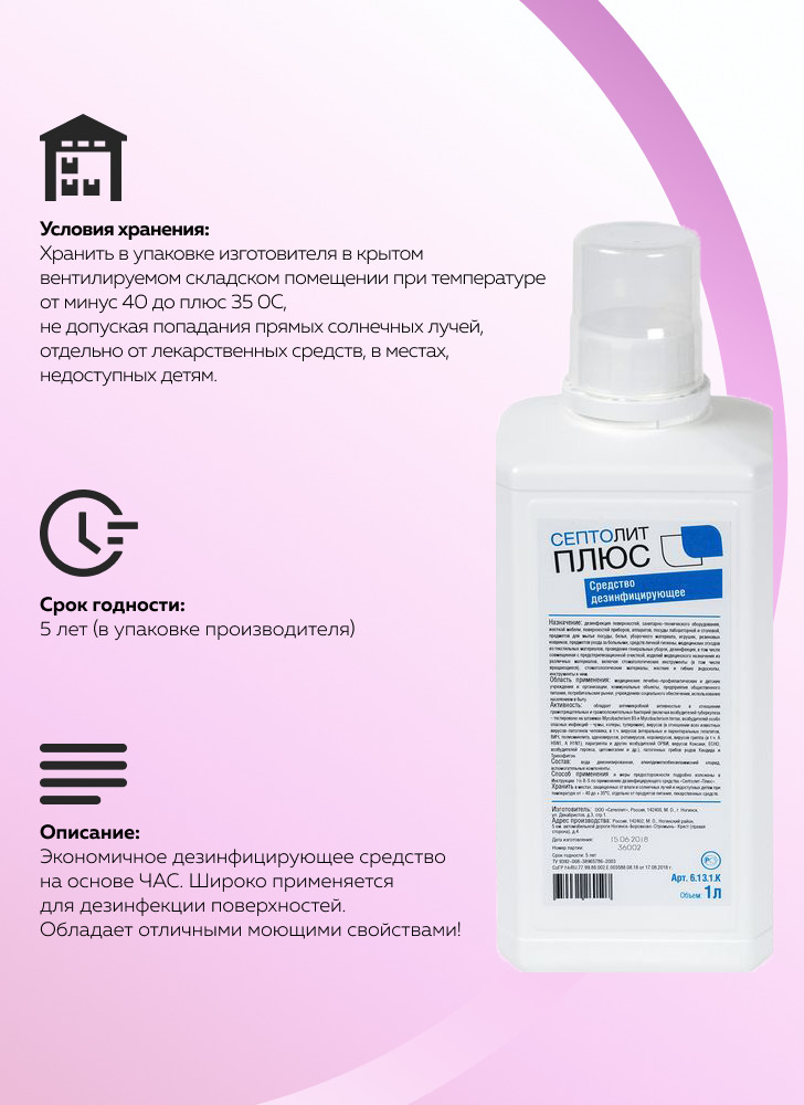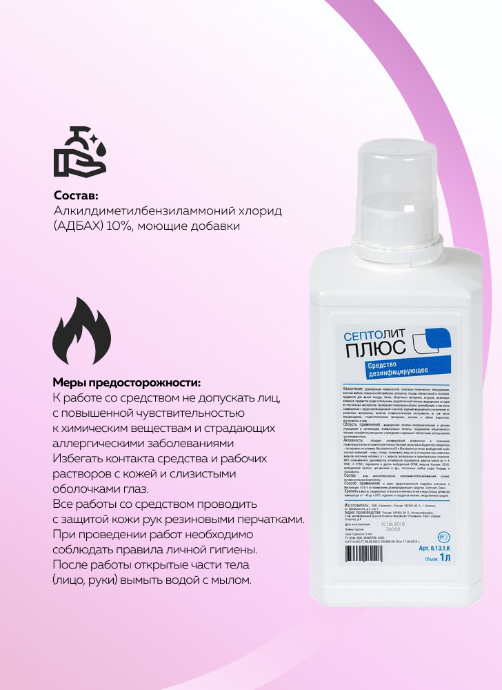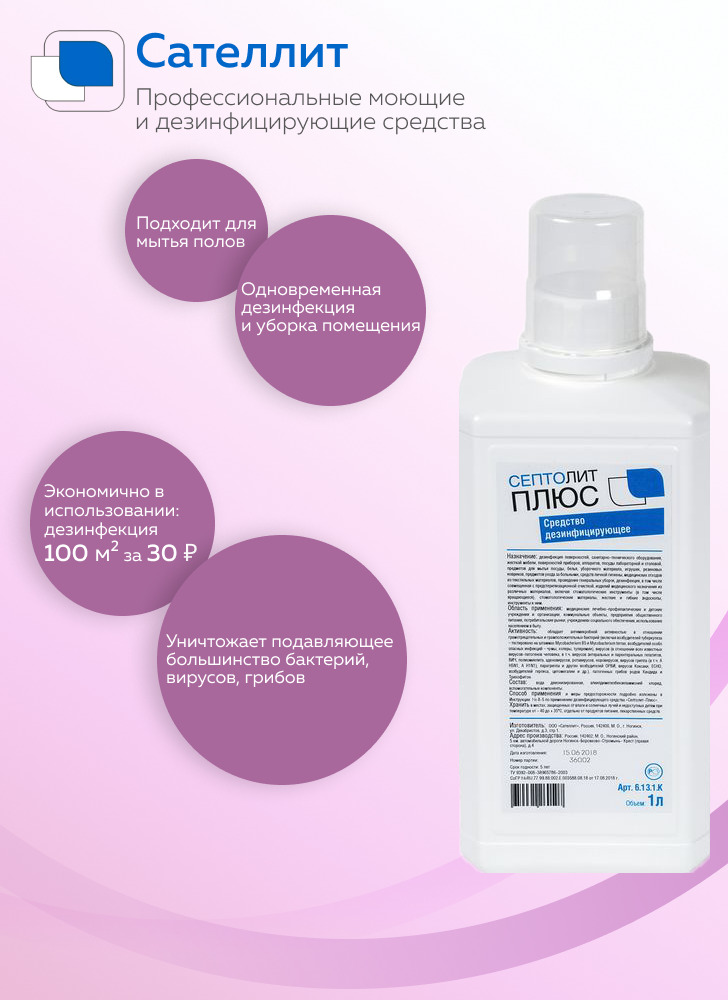Дезинфицирующее средство "Септолит Плюс", 1 литр с мерным колпачком