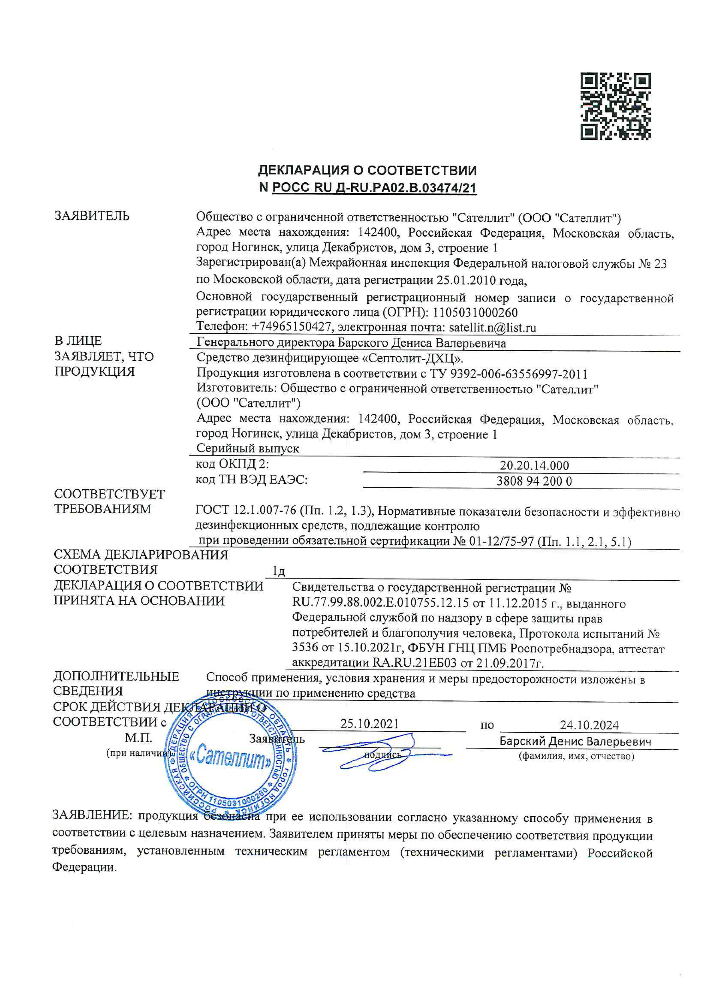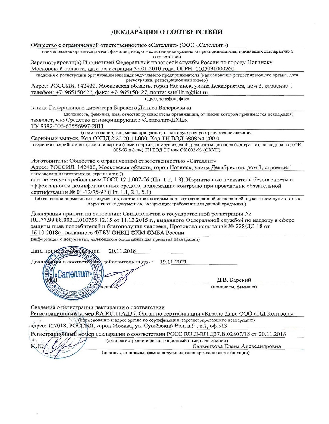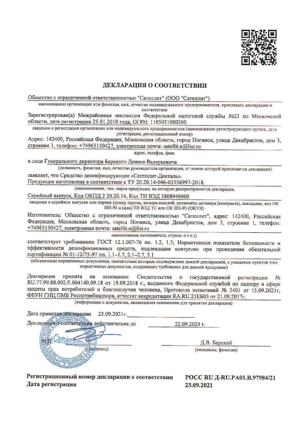 Дезинфицирующее средство "Септолит Плюс", 1 литр с мерным колпачком