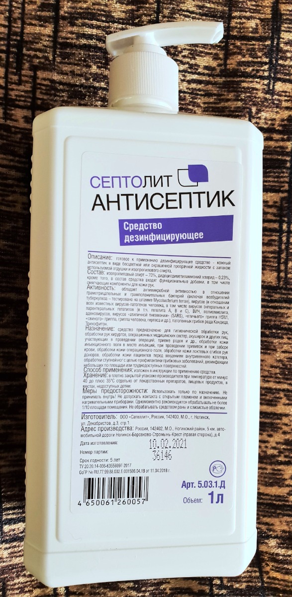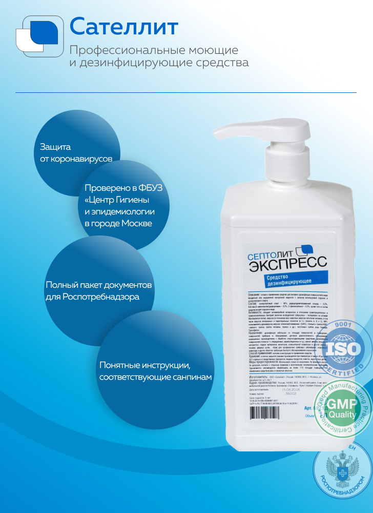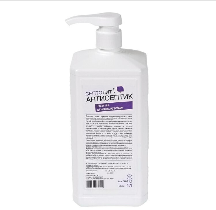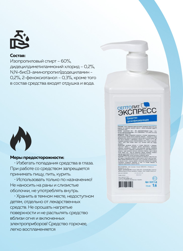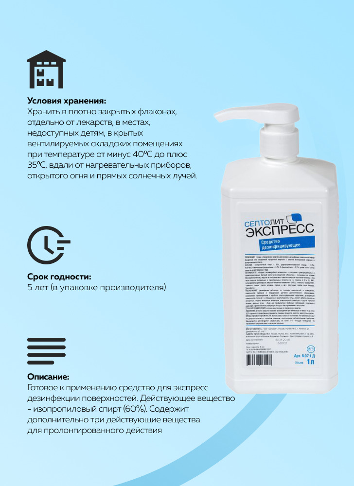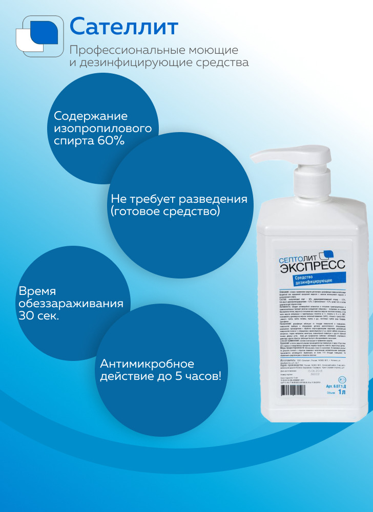 Дезинфицирующее средство "Септолит Экспресс", 1000 мл для обработки поверхностей (дозатор помпа)