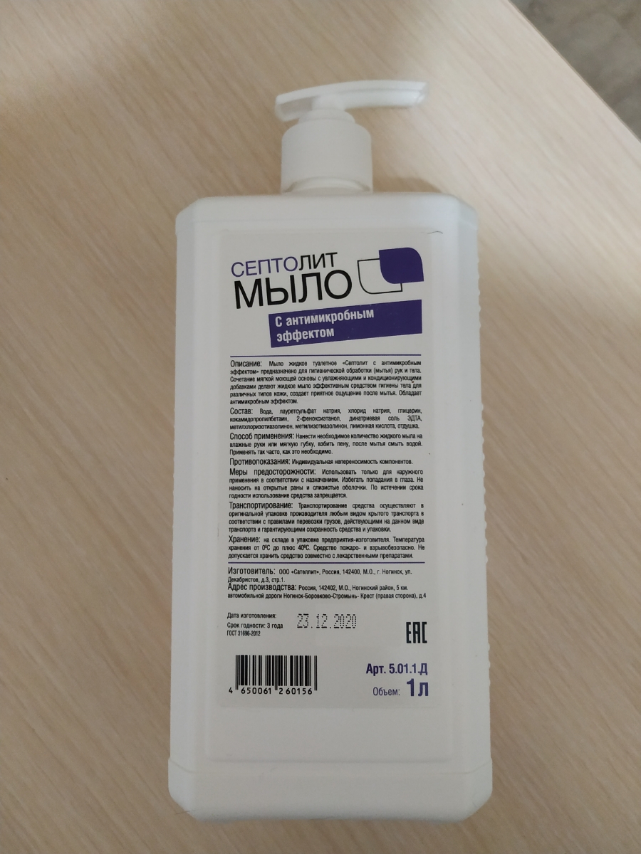 Мыло антибактериальное "Септолит Мыло с антимикробным эффектом", 1 литр с дозатором