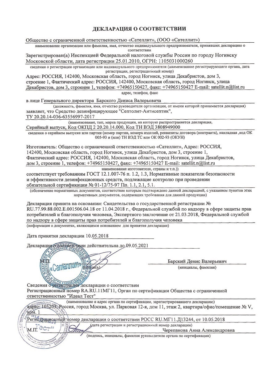 Септолит-Антисептик/ спиртовой кожный антисептик 1 л / для обработки и рук и поверхностей (УМР)