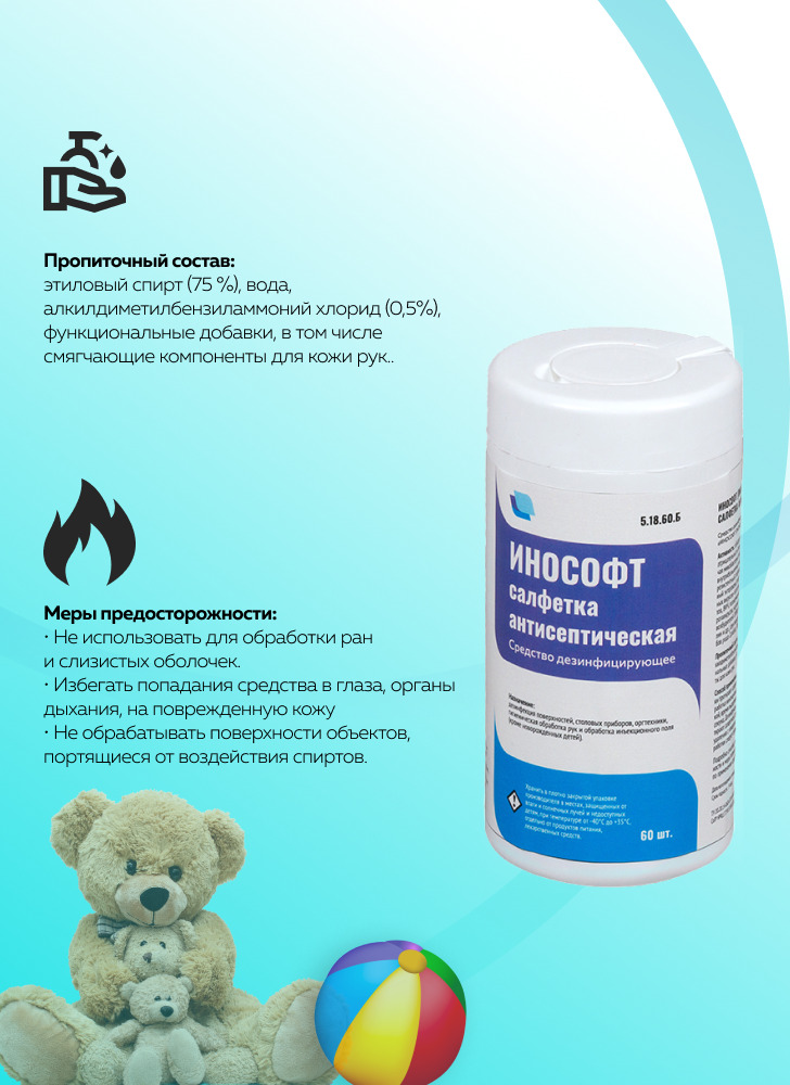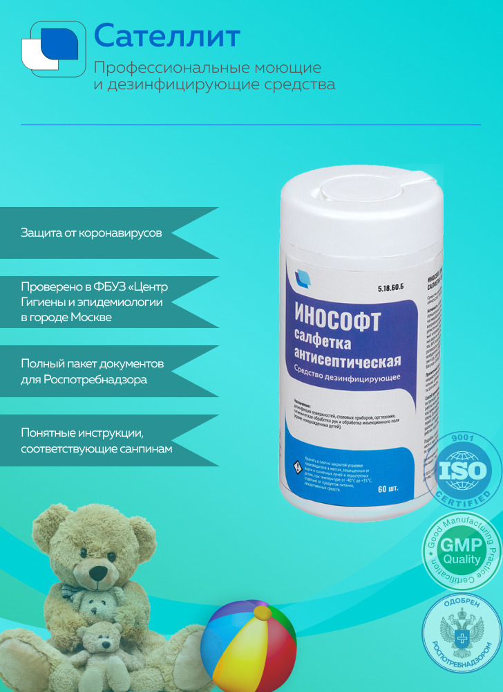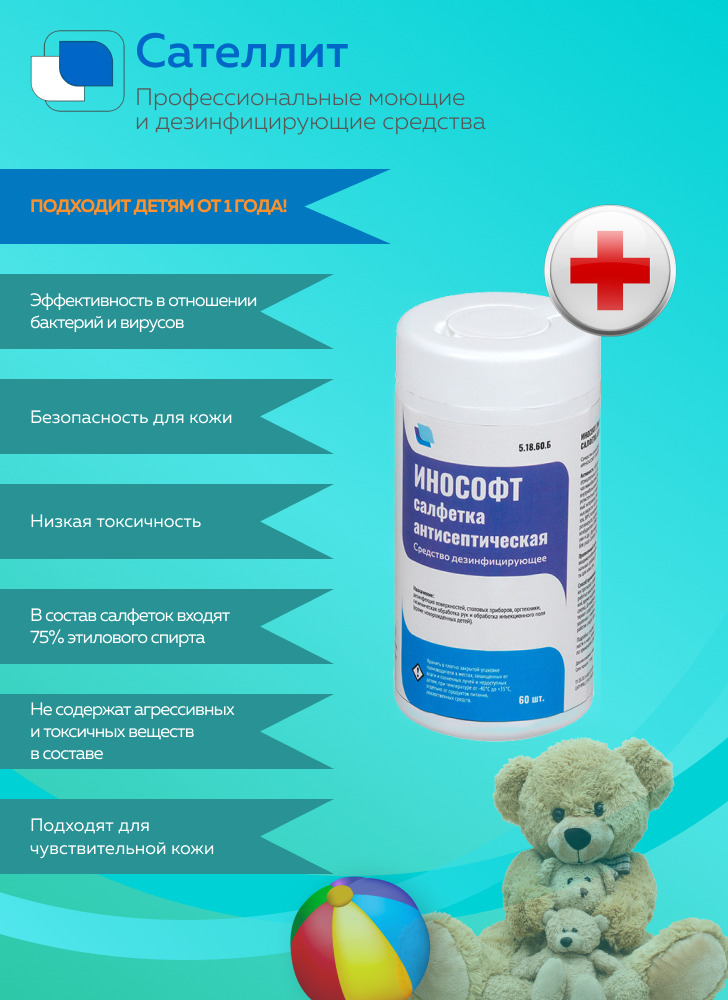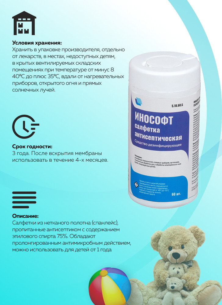 Антисептическая салфетка Инософт №60 банка, на этиловом спирте (75 %)