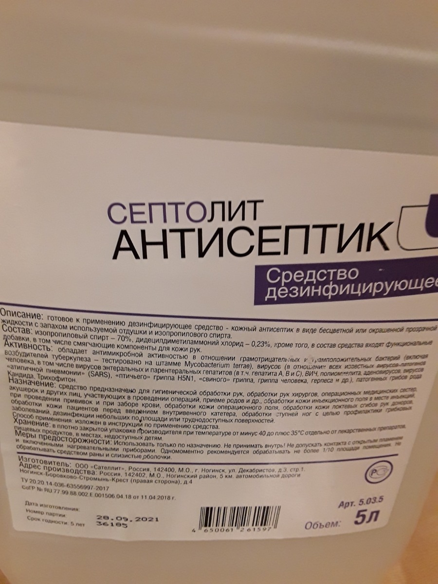 Септолит-Антисептик/ спиртовой кожный антисептик 5 л / для обработки и рук и поверхностей