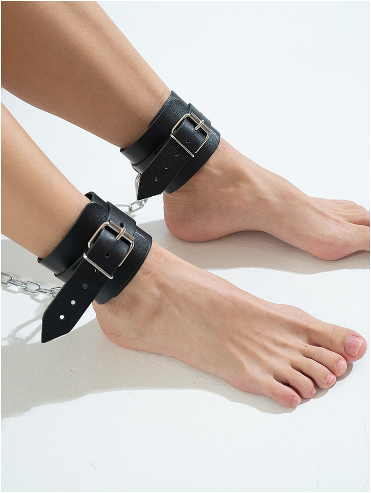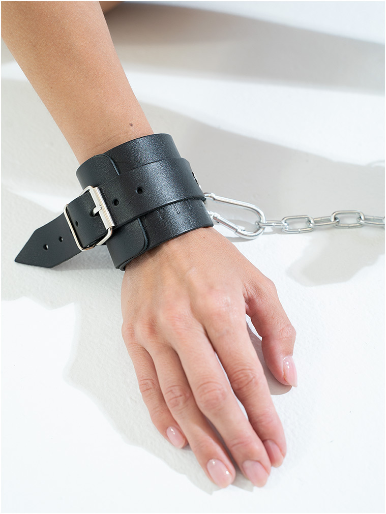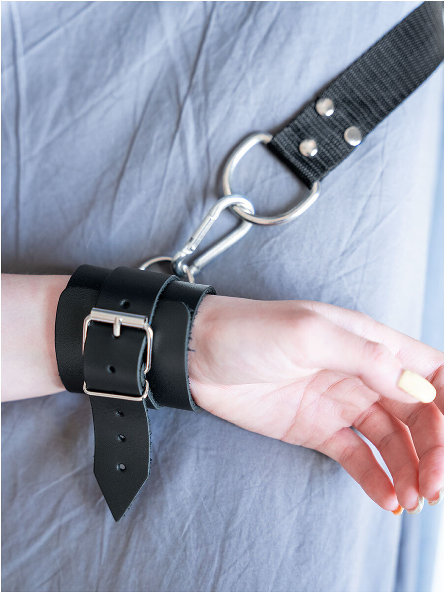 БДСМ фиксация к кровати "Сюрприз" SexyFire (оковы из черной кожи)