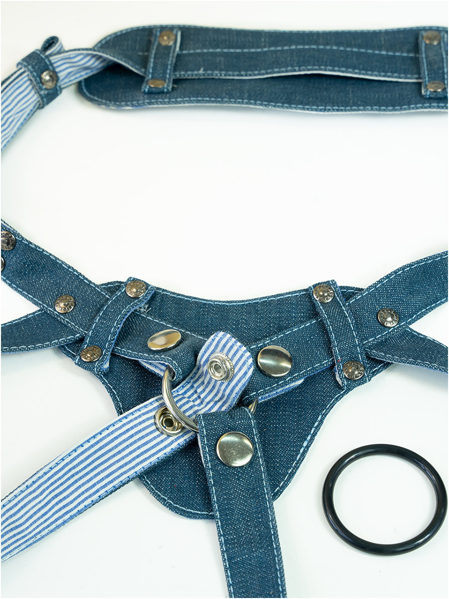 Джинсовые трусики для страпона Queen с креплениями O'Ring и Vac-u-Lock