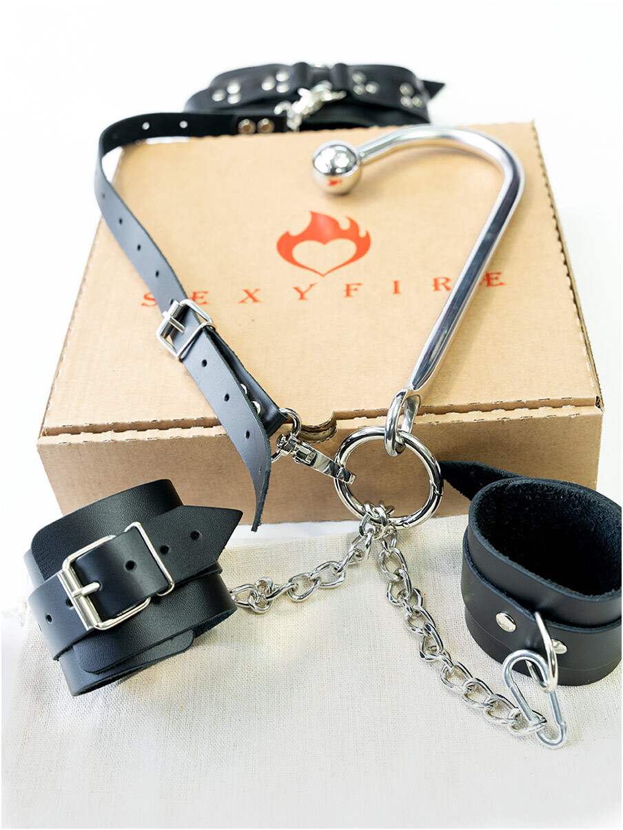 Анальный крюк SexyFire - БДСМ фиксация черная с цепочками (chain)