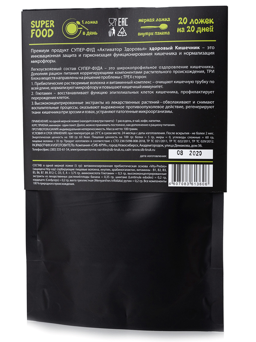 Растительный препарат для оздоровления ЖКТ "SUPERFOOD Здоровый кишечник", 100 г. Сиб-КруК
