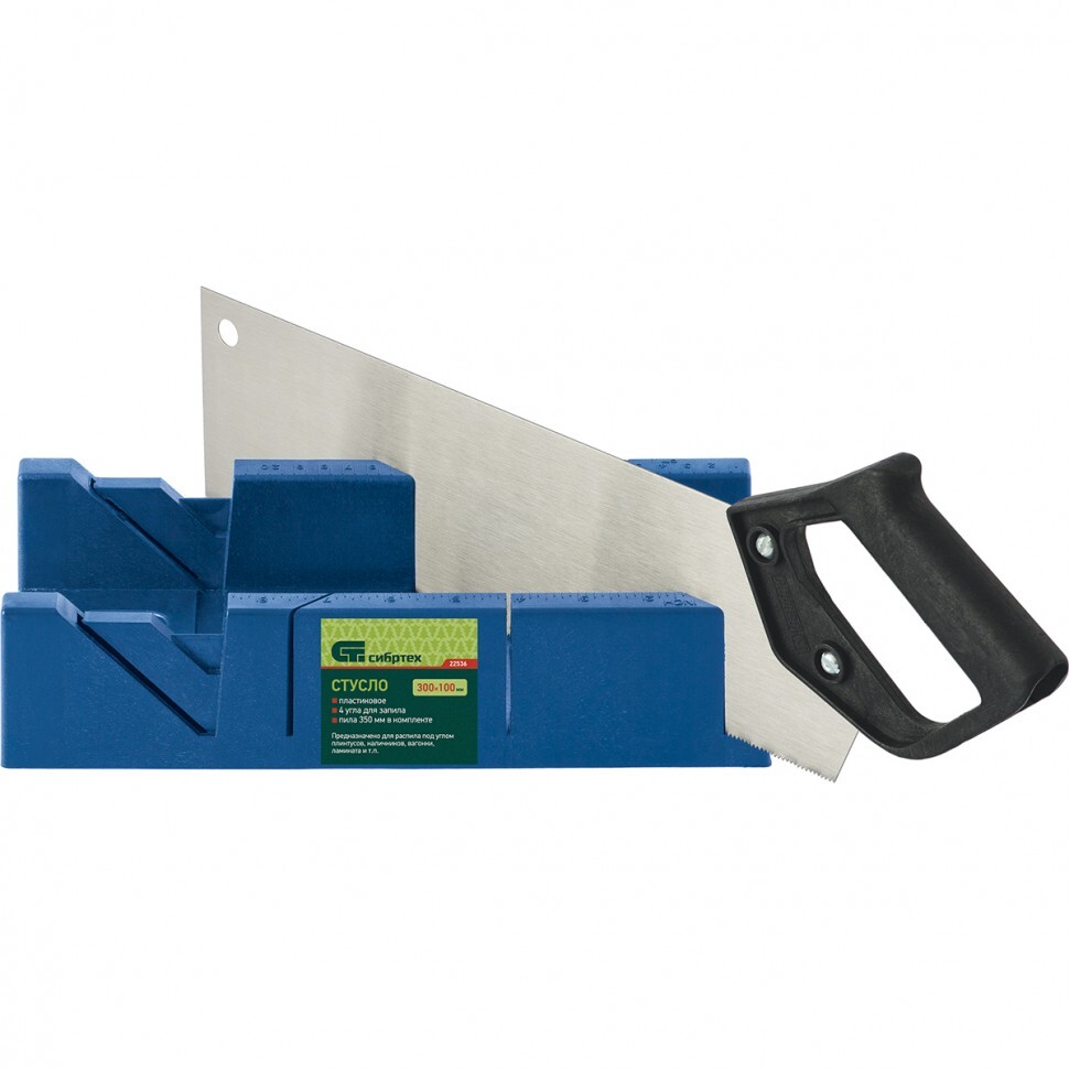 Стусло пластиковое, синее, 4 угла для запила, пила 350 мм СИБРТЕХ 22536