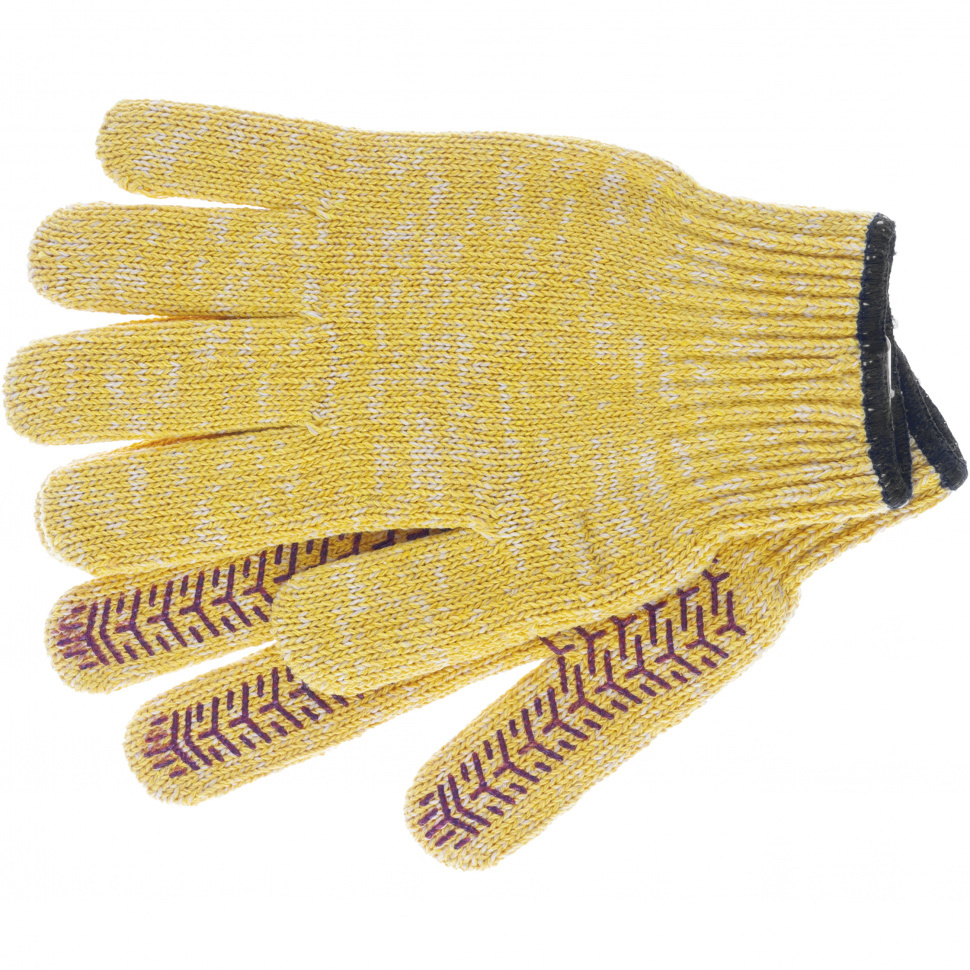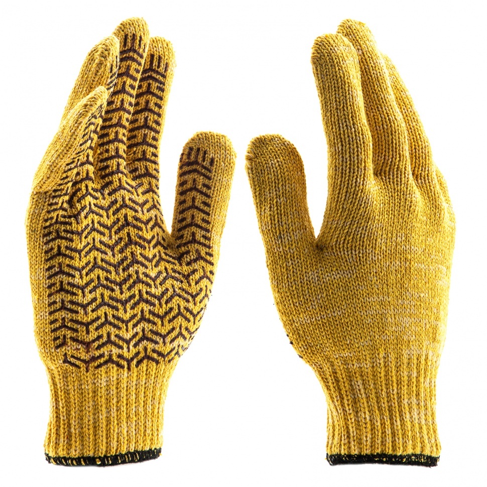 Перчатки трикотажные усиленные, гелевое ПВХ-покрытие, 7 класс, желтые Россия Сибртех