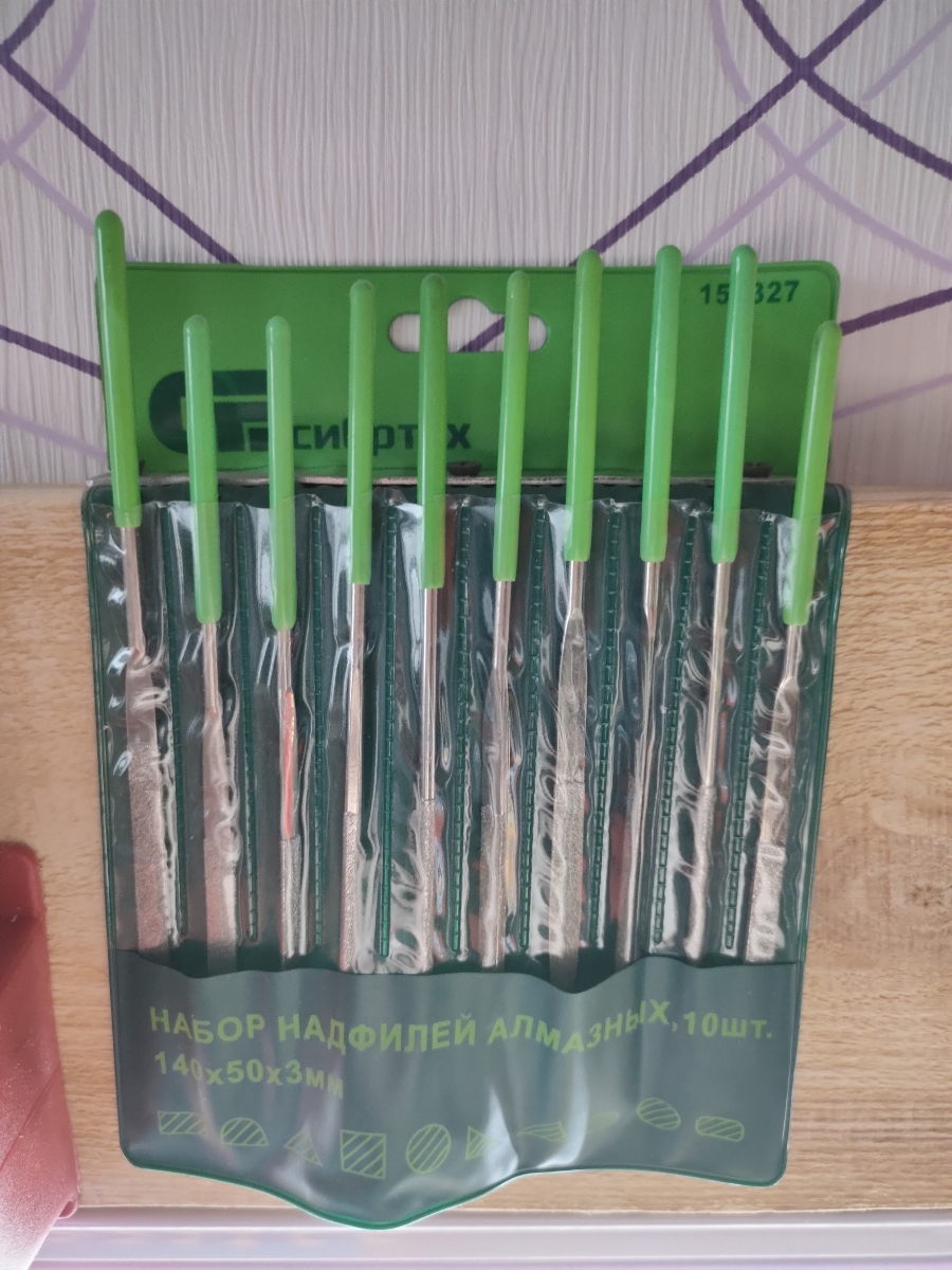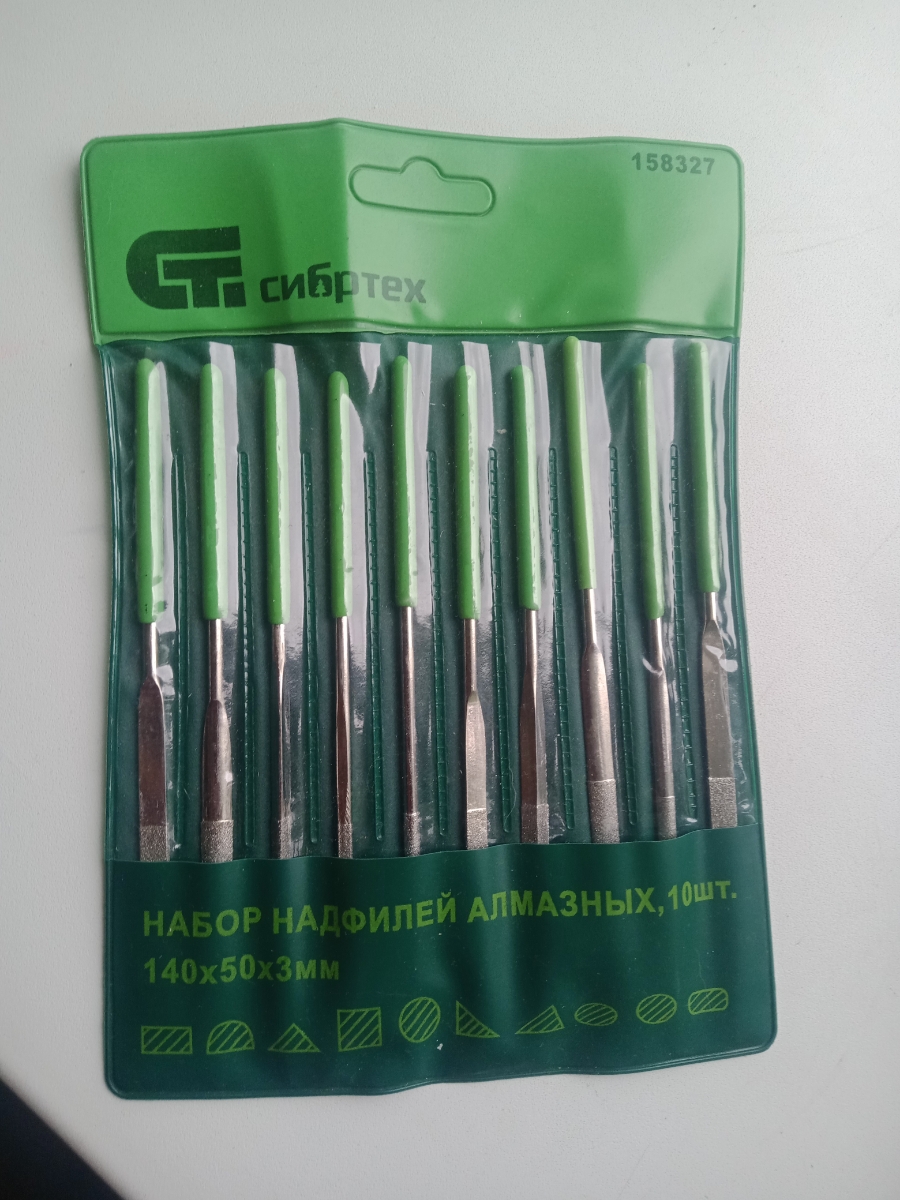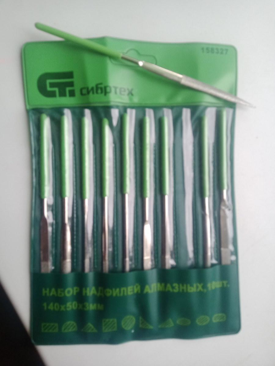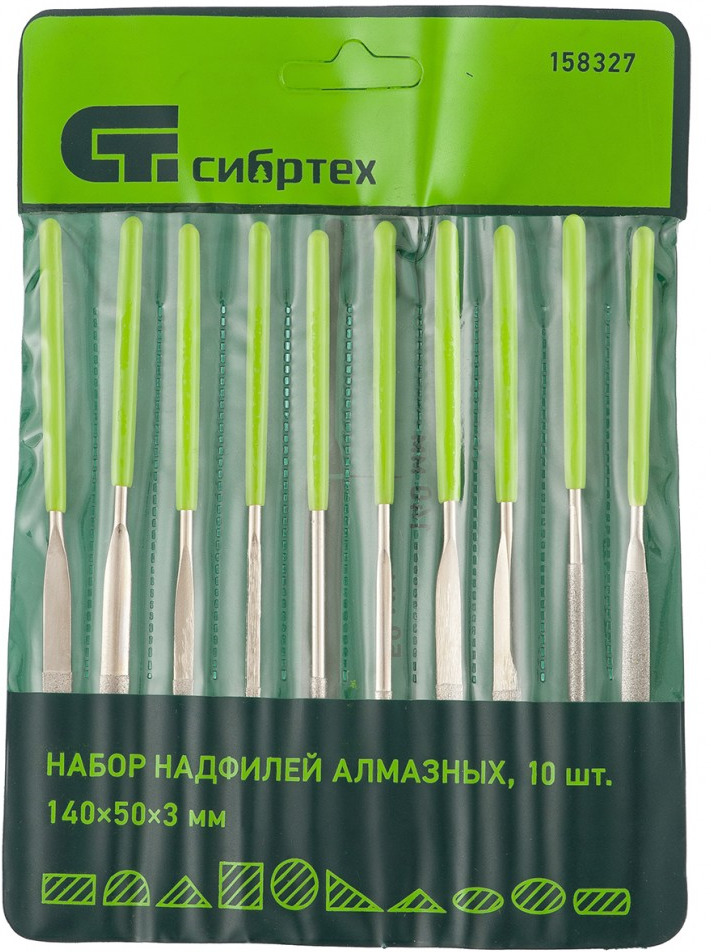 Набор надфилей Сибртех, 158327, алмазных, 140 х 50 х 3 мм, 10 шт