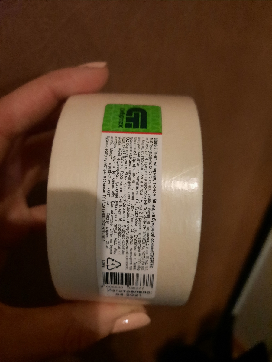 Лента малярная, 36 мм х 25 м, на бумажной основе Россия Сибртех / Скотч малярный белый