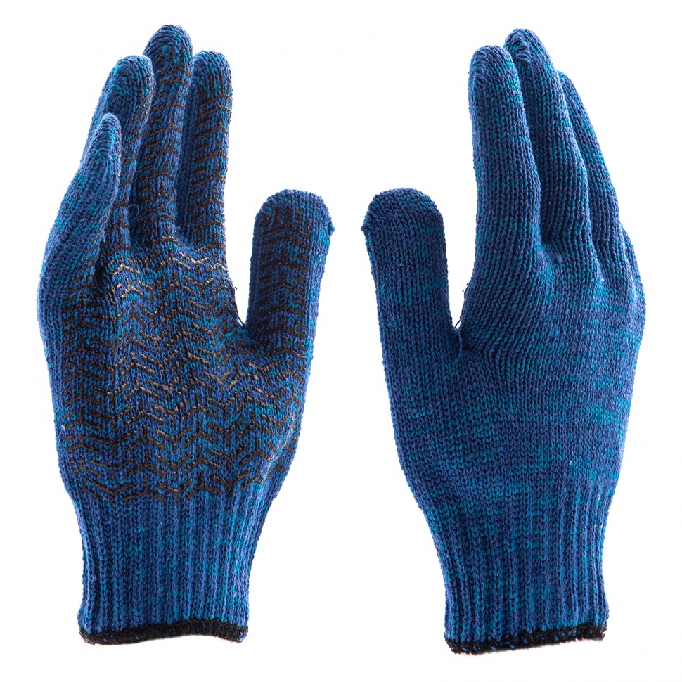 Перчатки трикотажные усиленные, гелевое ПВХ-покрытие, 7 класс, синие Россия Сибртех
